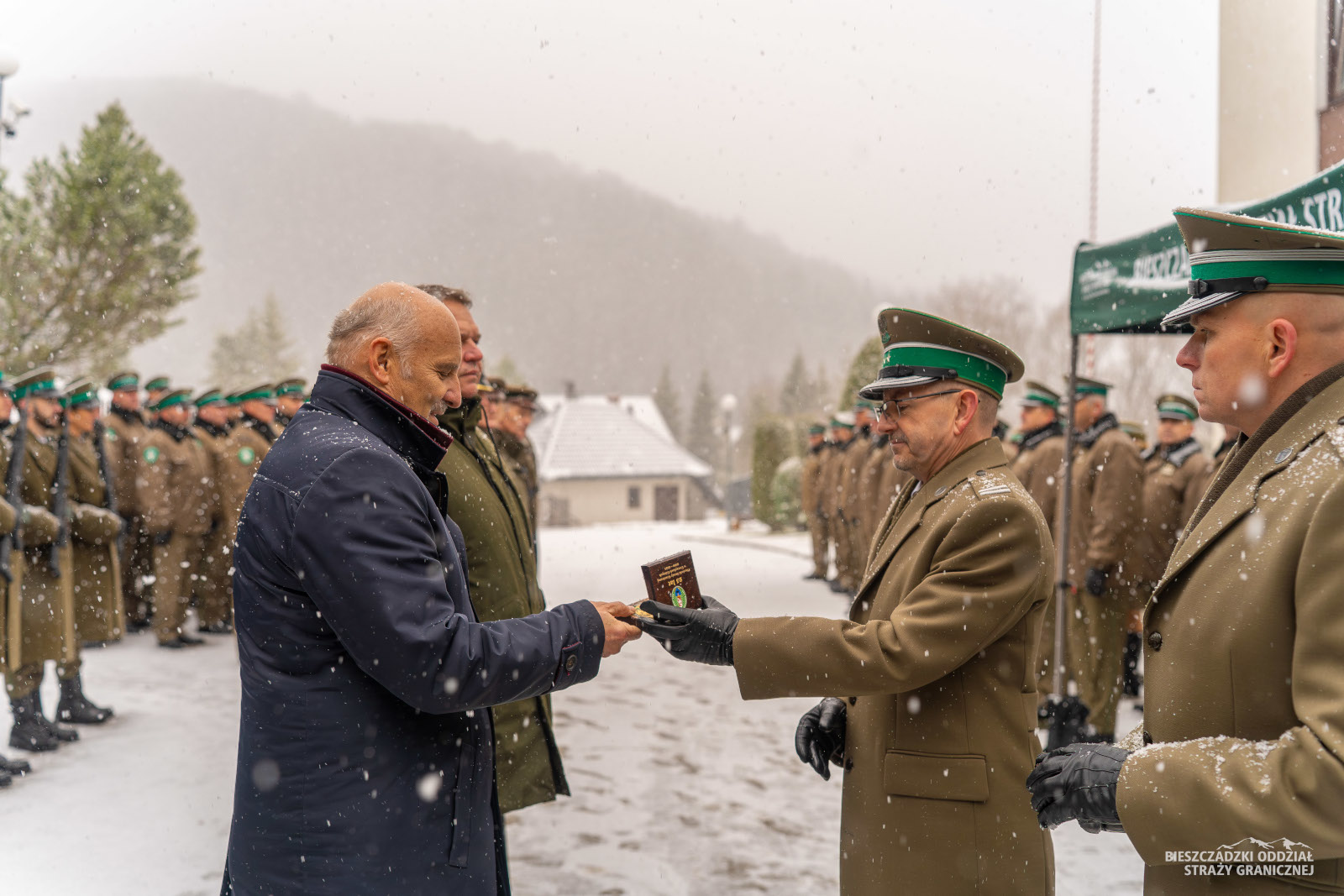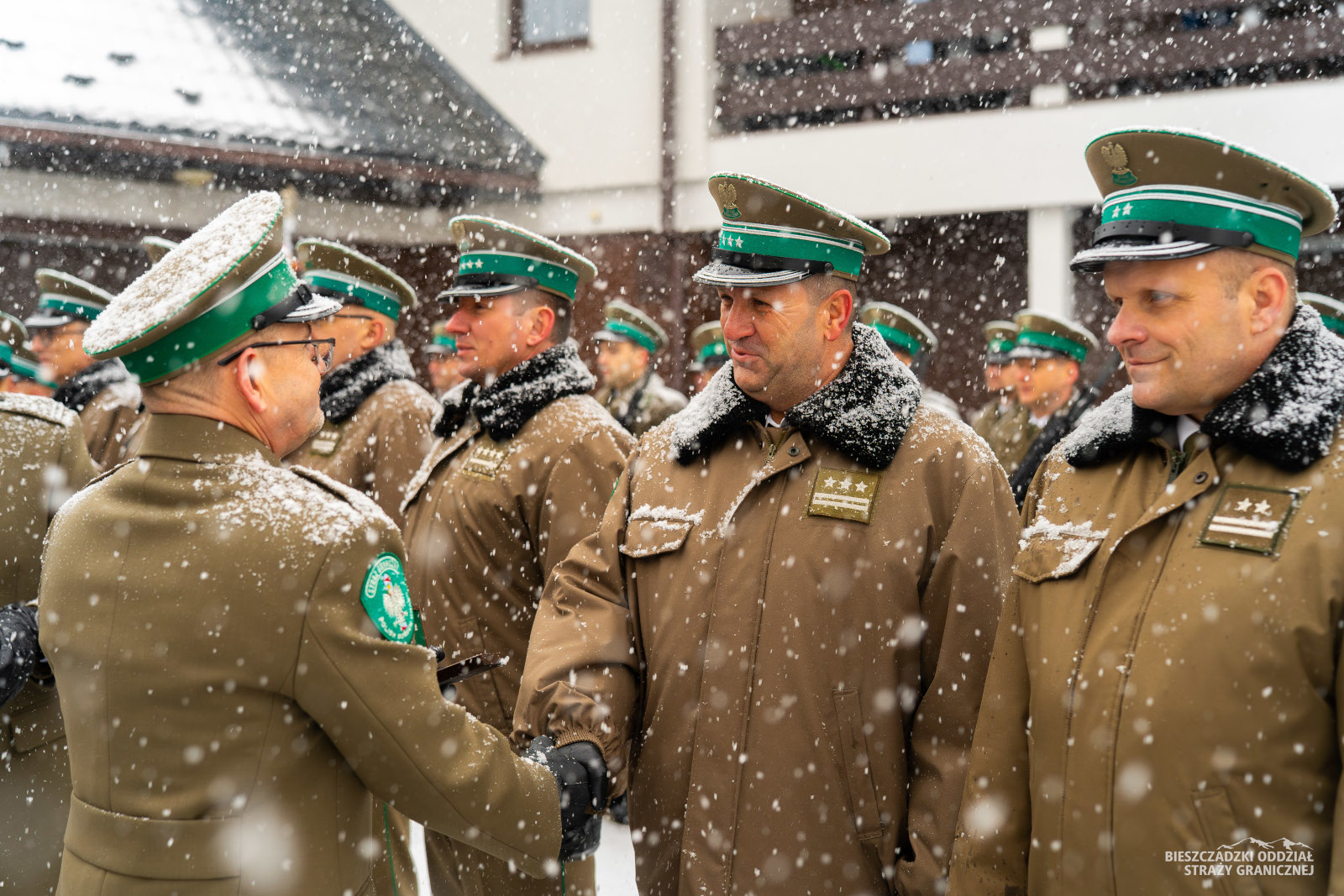 Zabierając głos, Komendant Oddziału podziękował funkcjonariuszom za ich codzienną służbę i pracę. Podkreślił, że mundurowi z tej placówki ochraniają jeden z najtrudniejszych odcinków podkarpackiej granicy państwowej. Teren malowniczy, piękny, ale bardzo wymagający. Jak zaznaczył Generał, służba w takich warunkach wymaga od funkcjonariuszy szczególnych umiejętności, w tym znajomości terenu oraz umiejętności współpracy z innymi służbami i instytucjami.