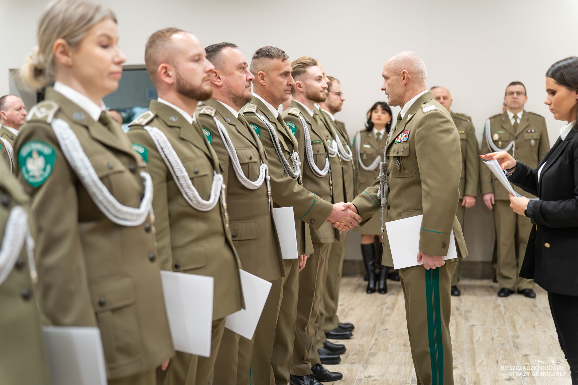 Komendant Bieszczadzkiego Oddziału SG pogratulował wyróżnionym i awansowanym funkcjonariuszom, a także życzył wytrwałości w pełnej wyzwań służbie.