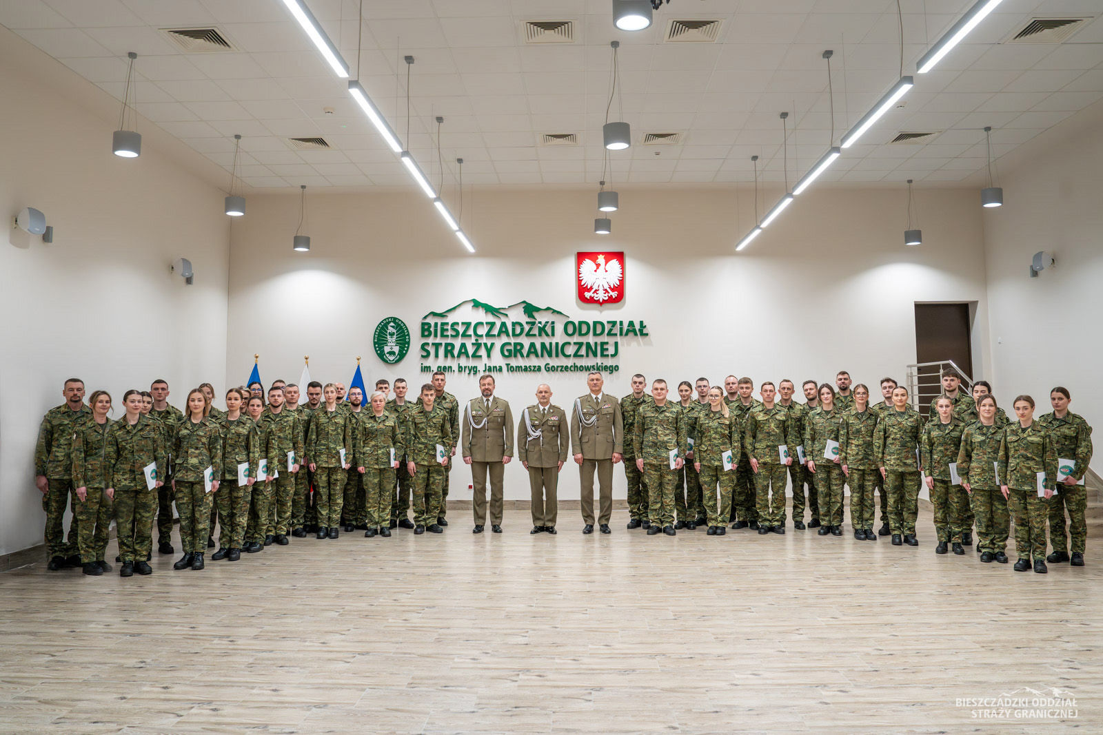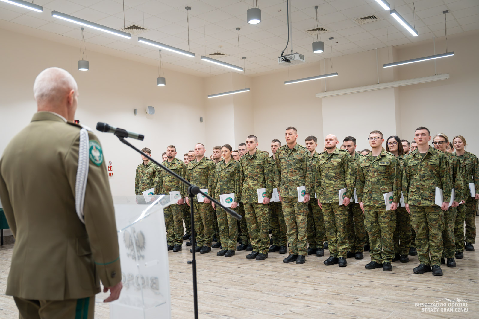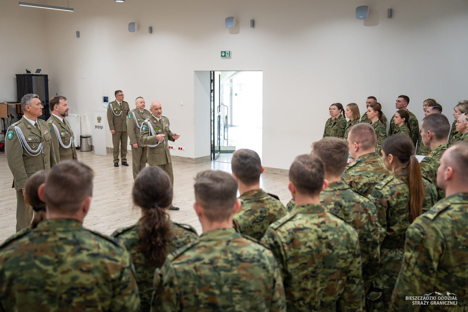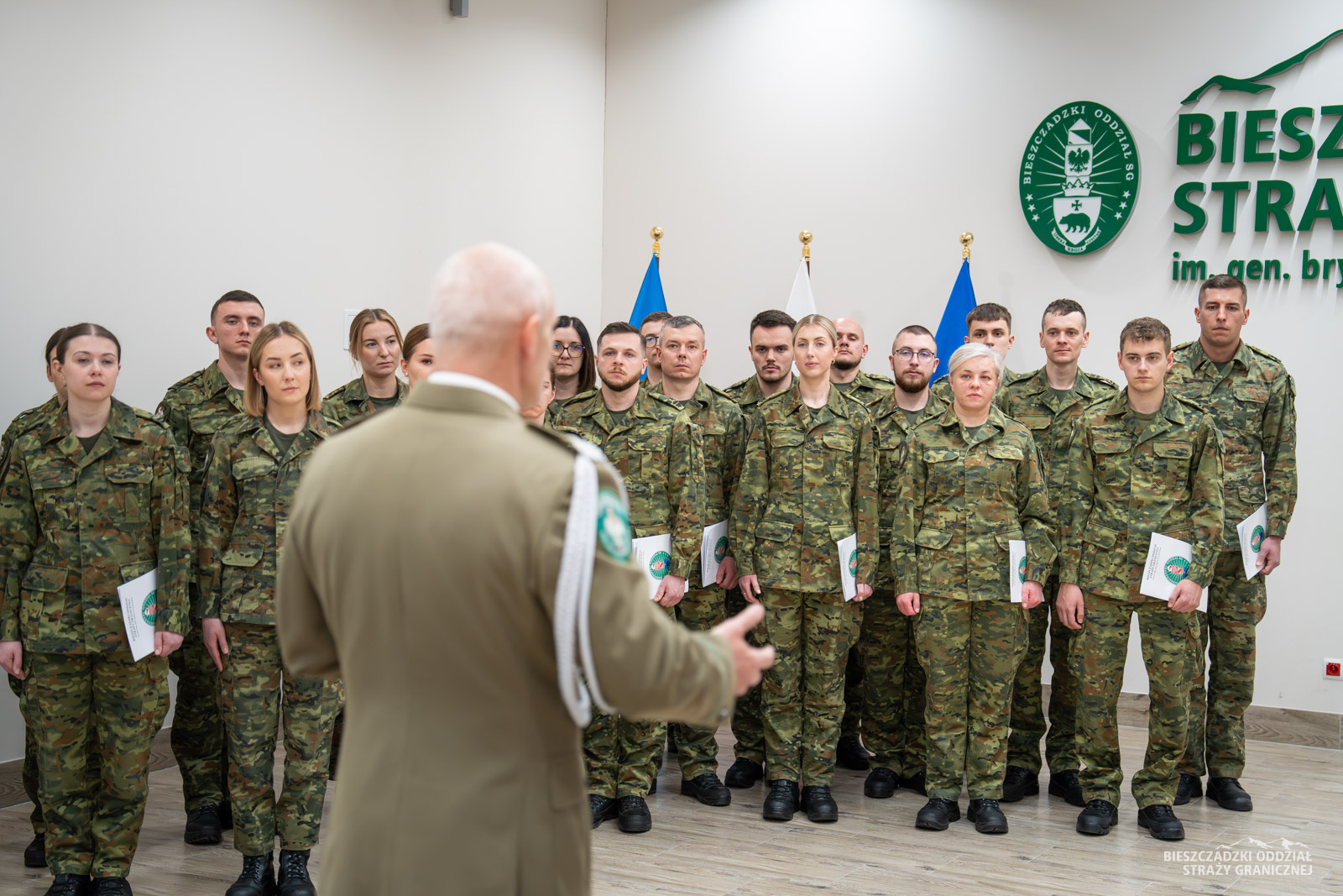 Zbiórkę zorganizowano 7 kwietnia w auli komendy BiOSG. W obecności kadry kierowniczej, Komendant oddziału gen. bryg. SG Tomasz Zybiński uroczyście wręczył akty mianowania. Ponad 40-osobowa grupa funkcjonariuszy ukończyła szkolenie podstawowe, a następnie podoficerskie w Ośrodku Szkoleń Specjalistycznych SG w Lubaniu. Komendant Bieszczadzkiego Oddziału SG pogratulował pozytywnego ukończenia szkoleń. Życzył wytrwałości w pełnej wyzwań służbie granicznej.