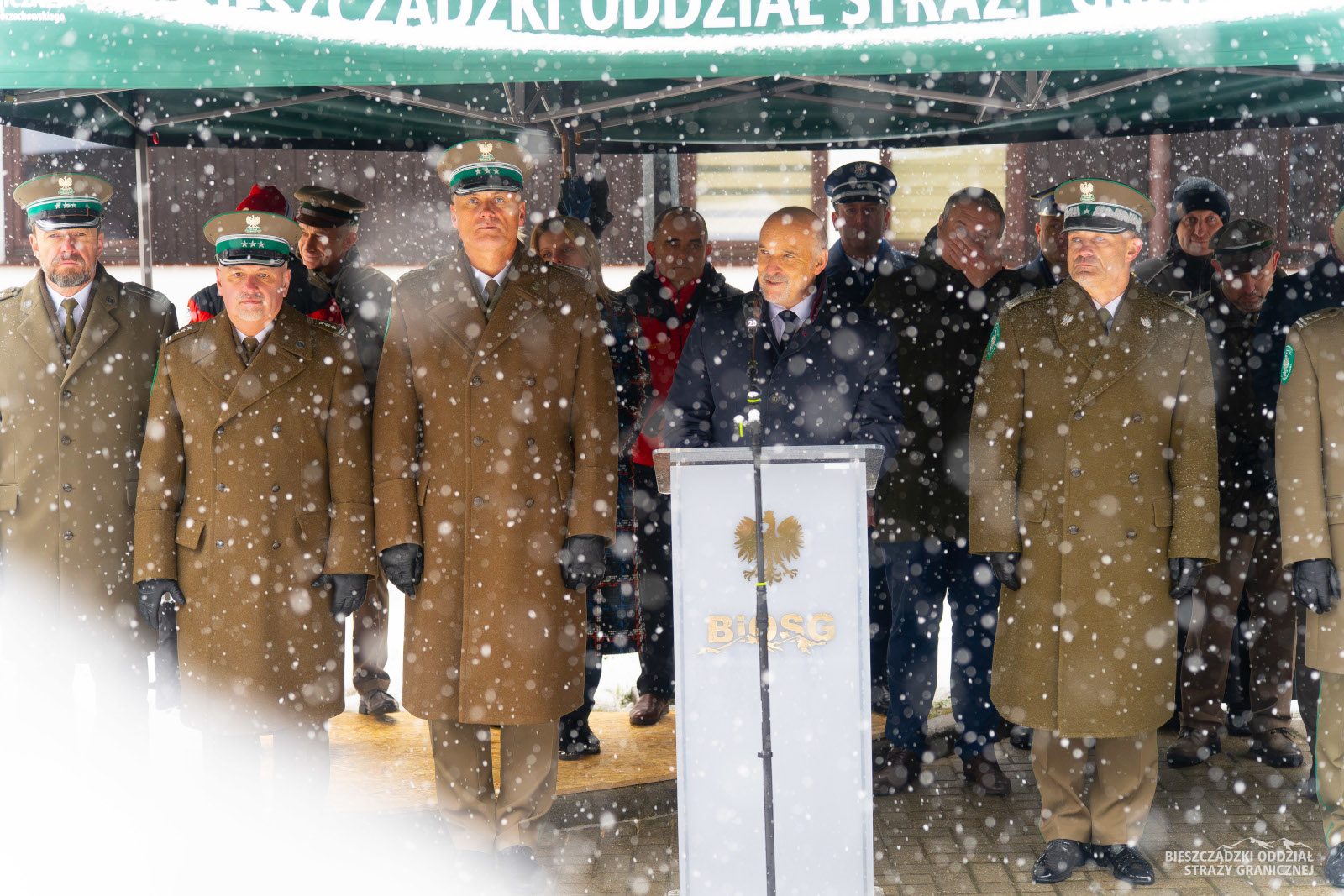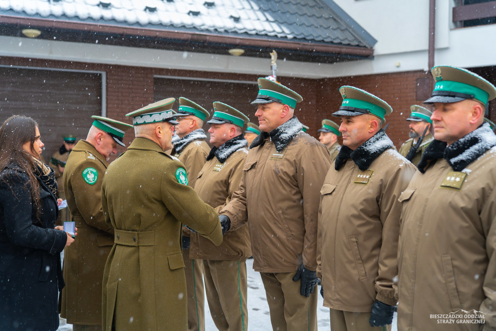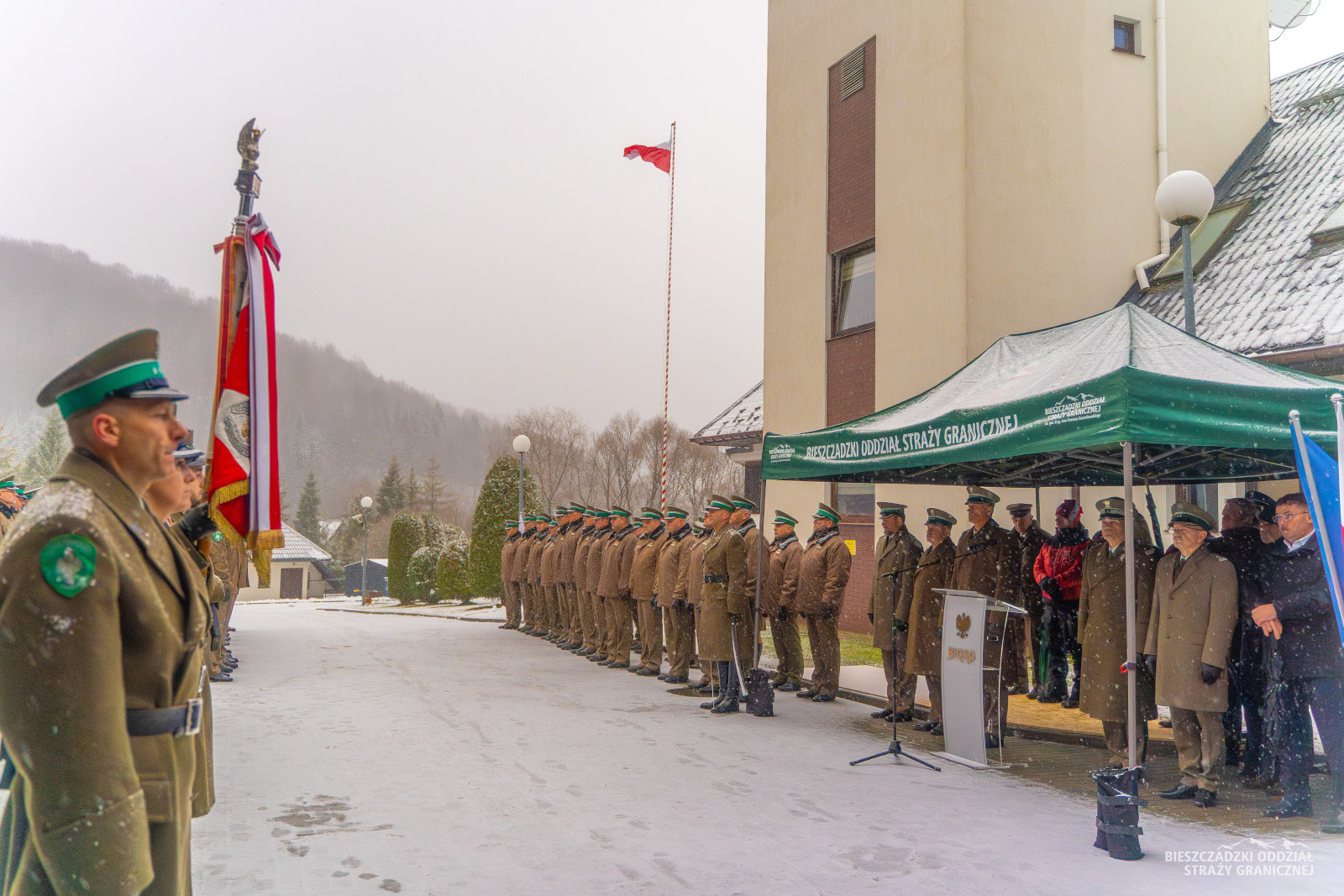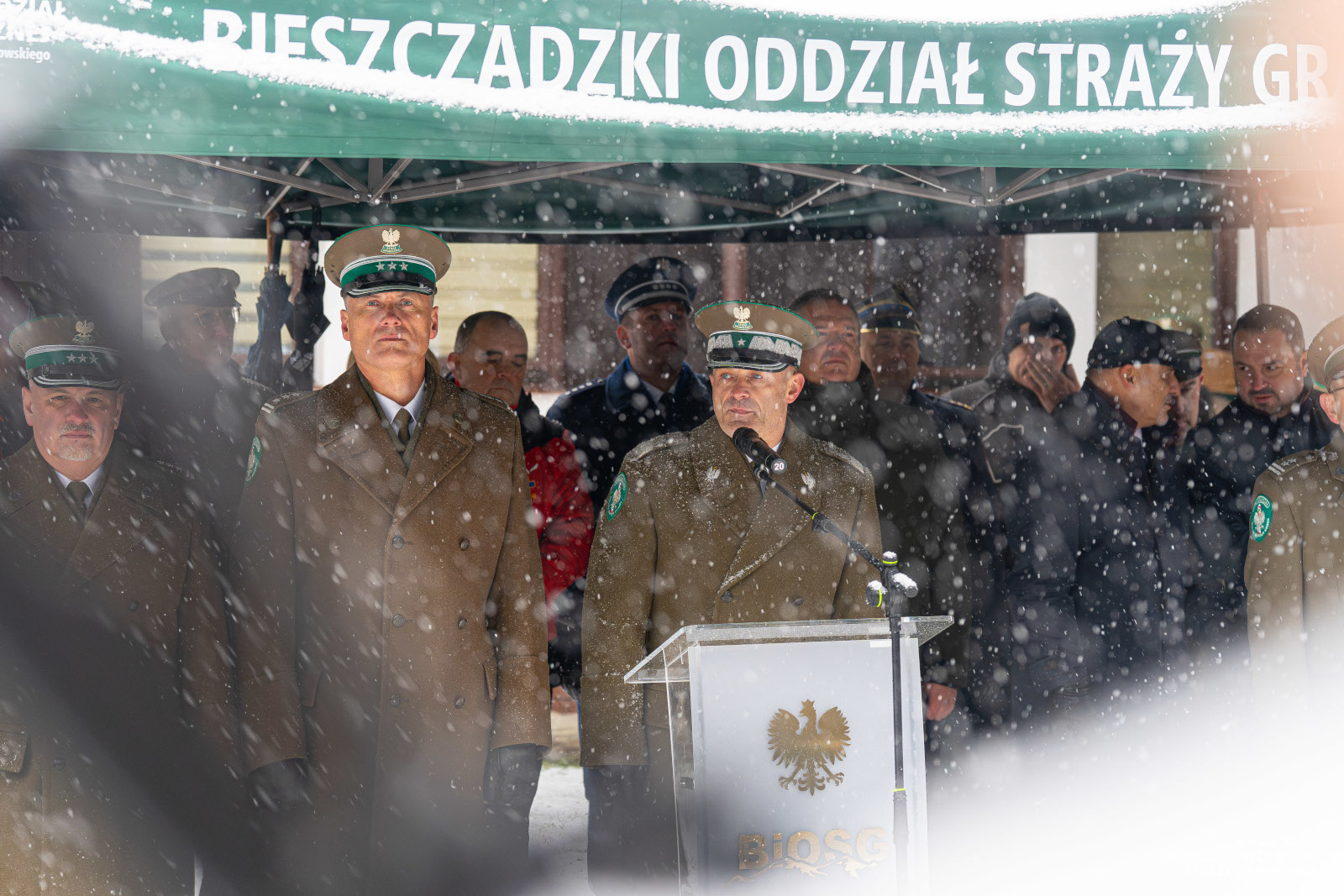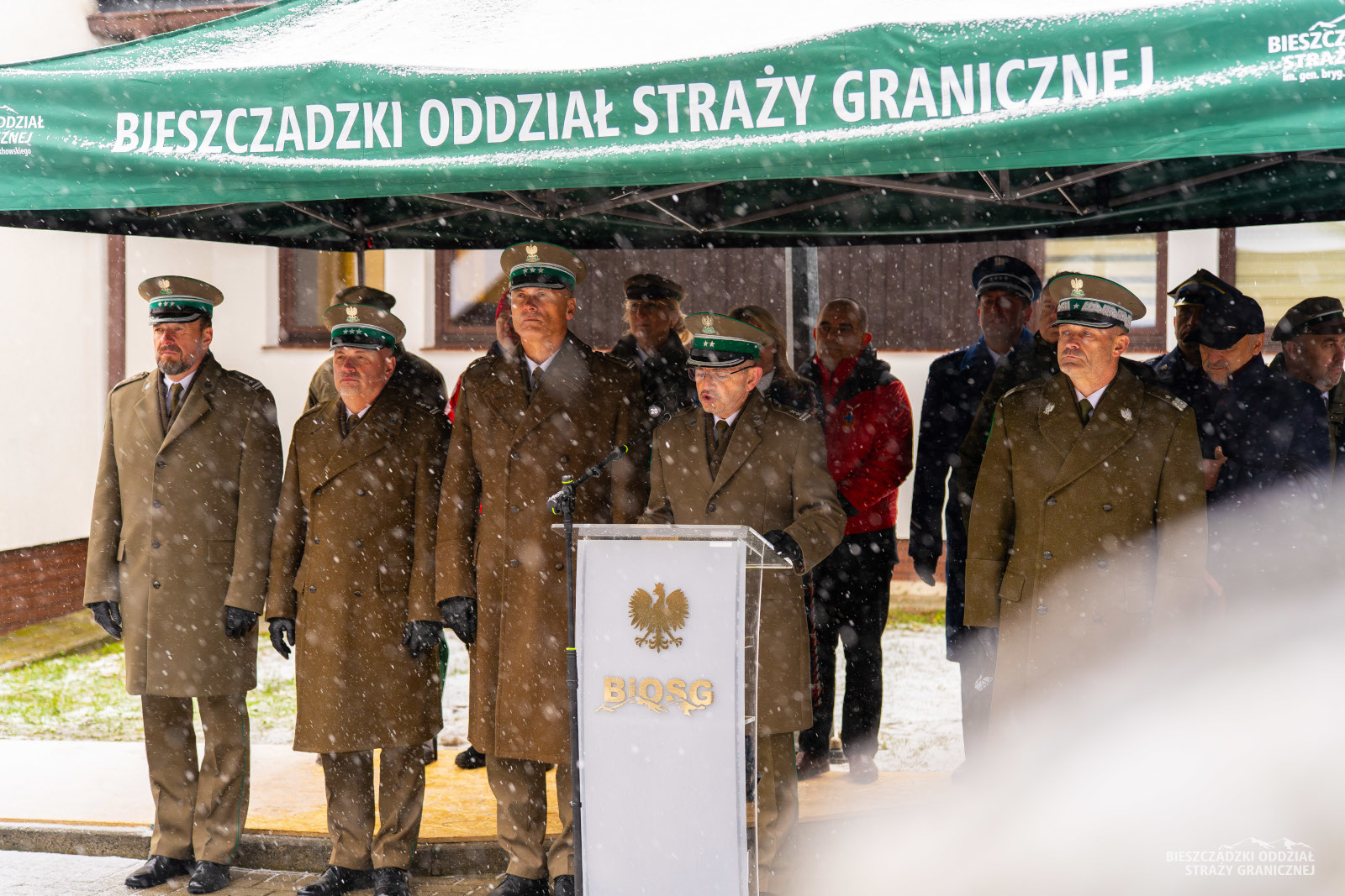 Zabierając głos, Komendant Oddziału podziękował funkcjonariuszom za ich codzienną służbę i pracę. Podkreślił, że mundurowi z tej placówki ochraniają jeden z najtrudniejszych odcinków podkarpackiej granicy państwowej. Teren malowniczy, piękny, ale bardzo wymagający. Jak zaznaczył Generał, służba w takich warunkach wymaga od funkcjonariuszy szczególnych umiejętności, w tym znajomości terenu oraz umiejętności współpracy z innymi służbami i instytucjami.