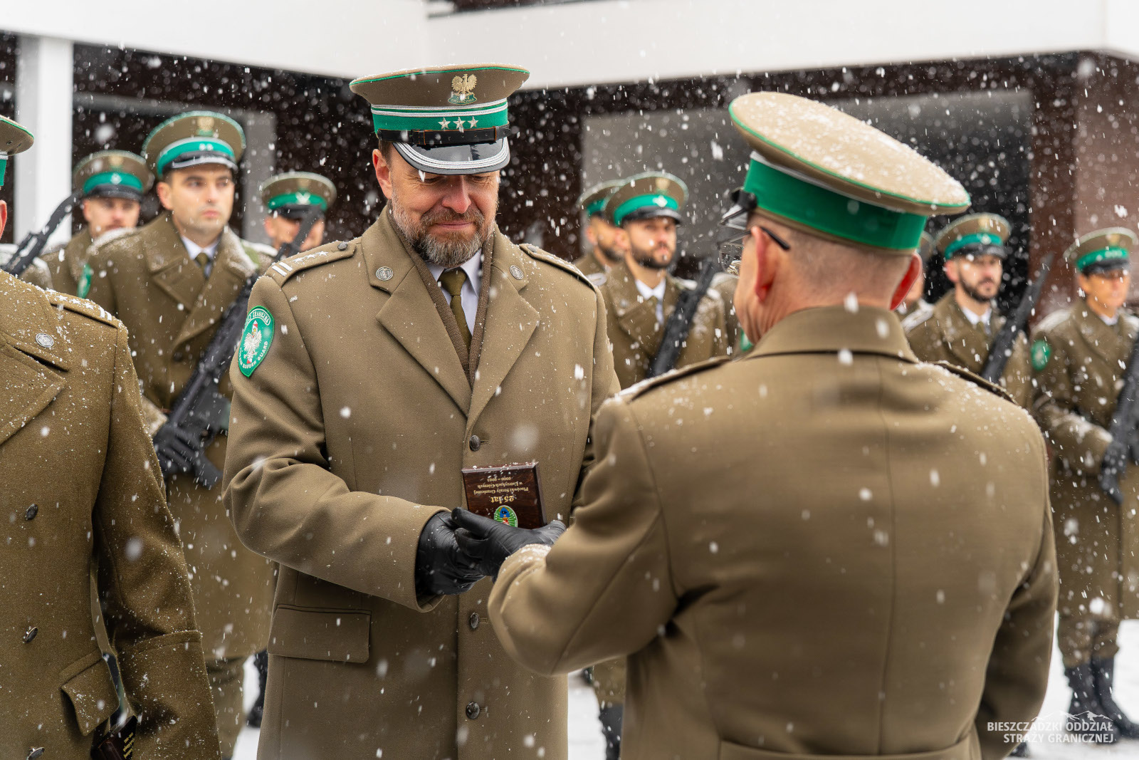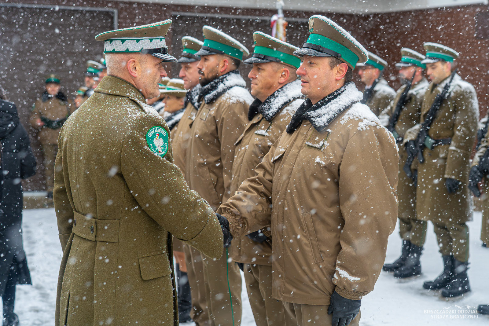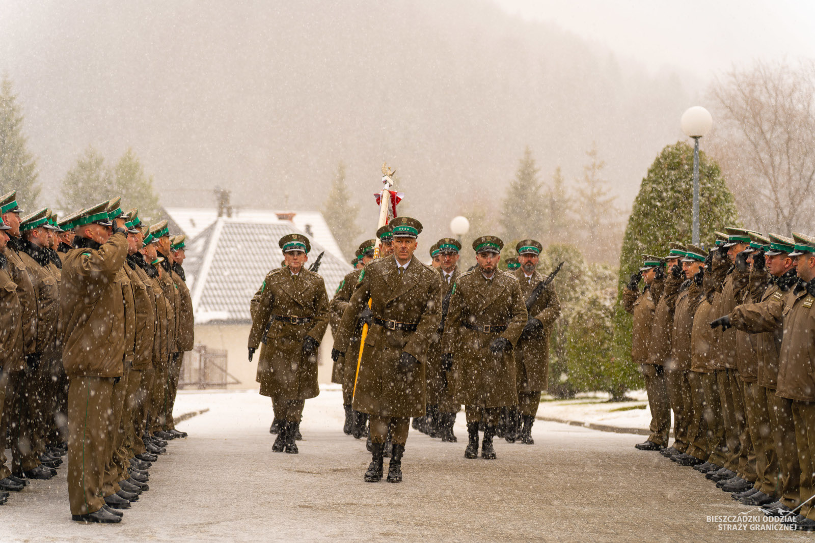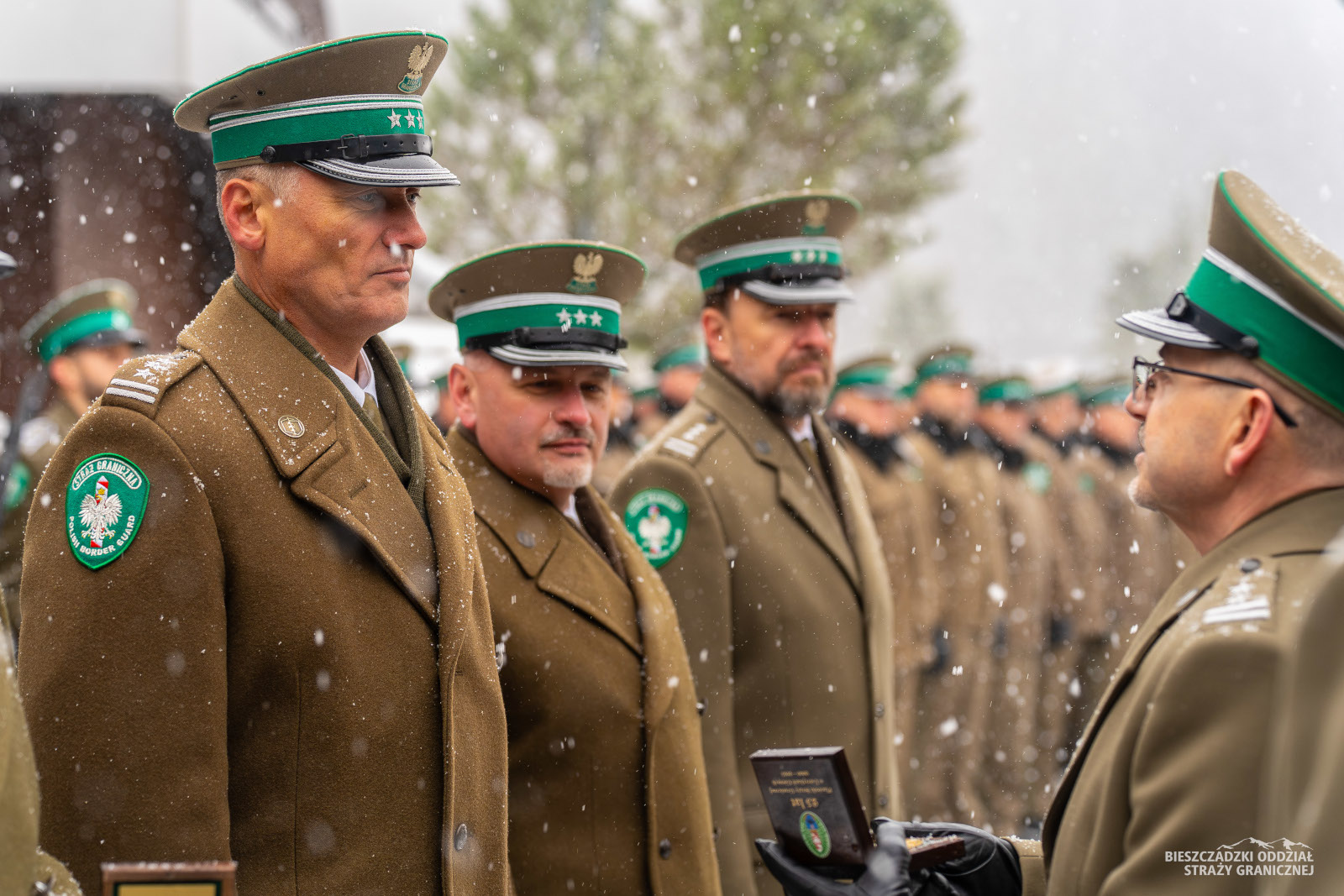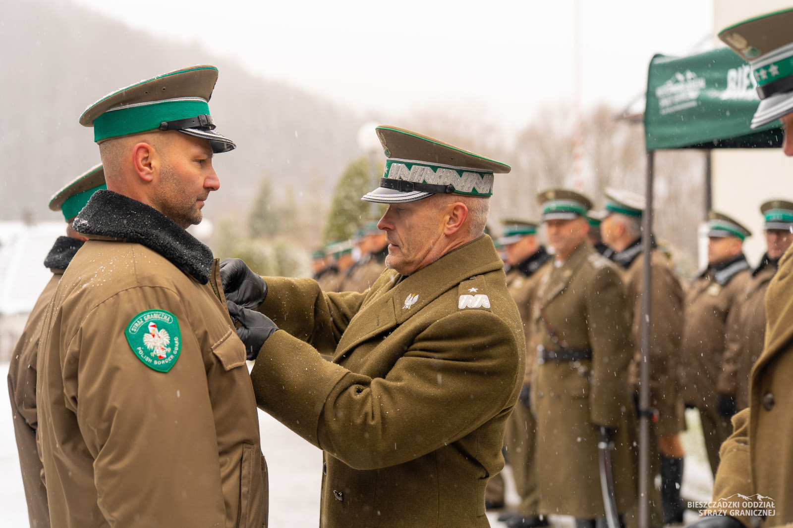 Zabierając głos, Komendant Oddziału podziękował funkcjonariuszom za ich codzienną służbę i pracę. Podkreślił, że mundurowi z tej placówki ochraniają jeden z najtrudniejszych odcinków podkarpackiej granicy państwowej. Teren malowniczy, piękny, ale bardzo wymagający. Jak zaznaczył Generał, służba w takich warunkach wymaga od funkcjonariuszy szczególnych umiejętności, w tym znajomości terenu oraz umiejętności współpracy z innymi służbami i instytucjami.