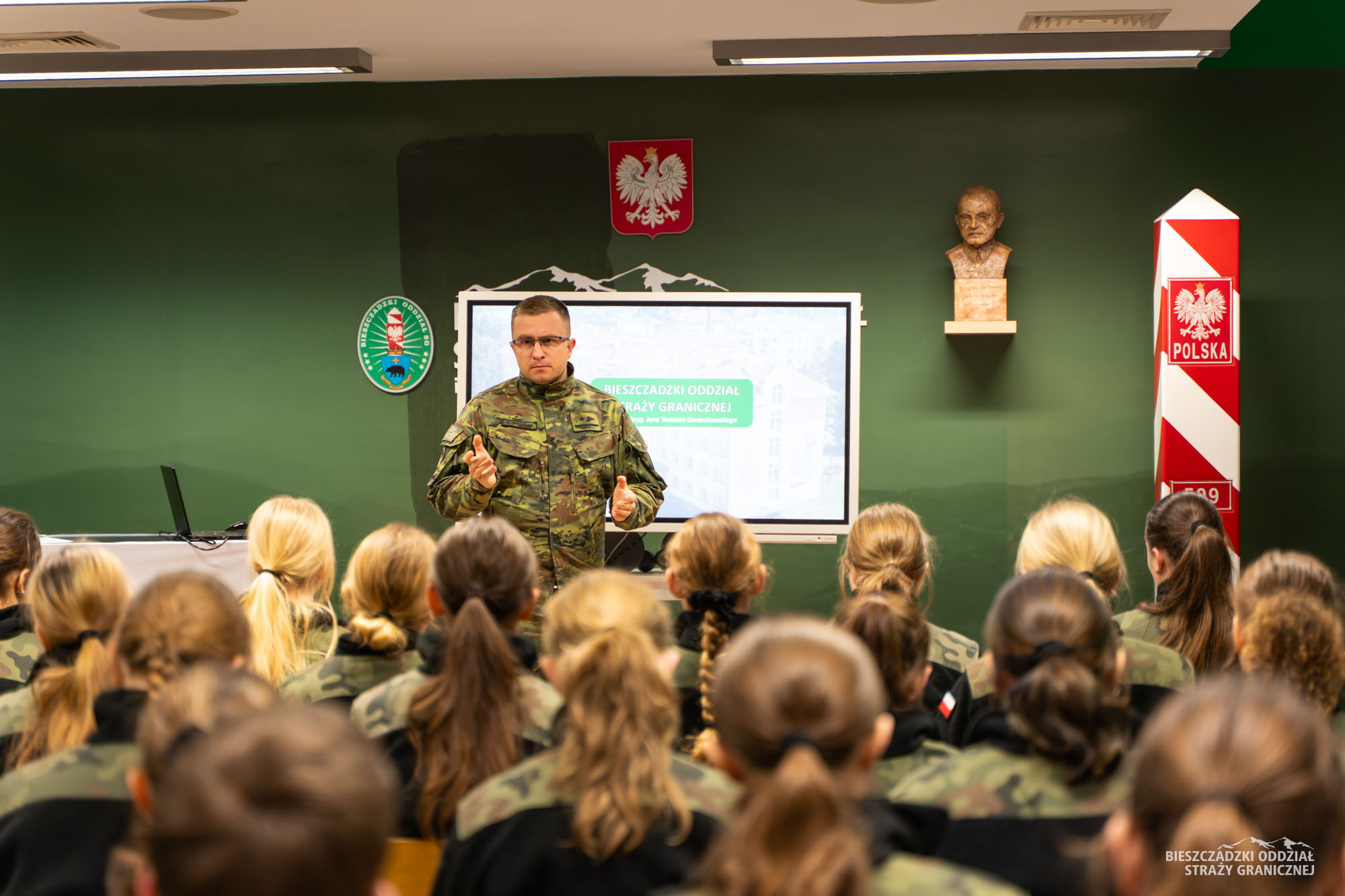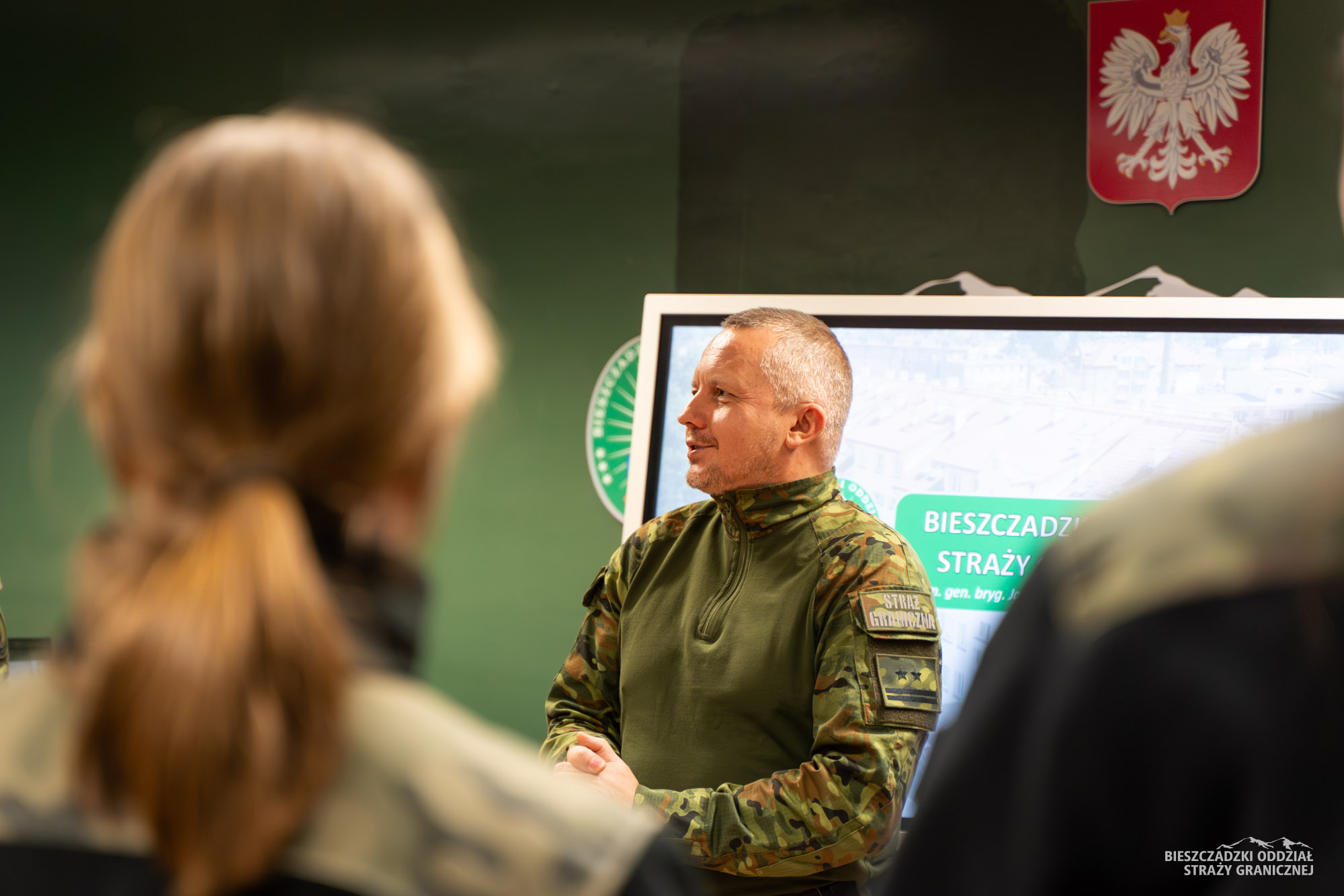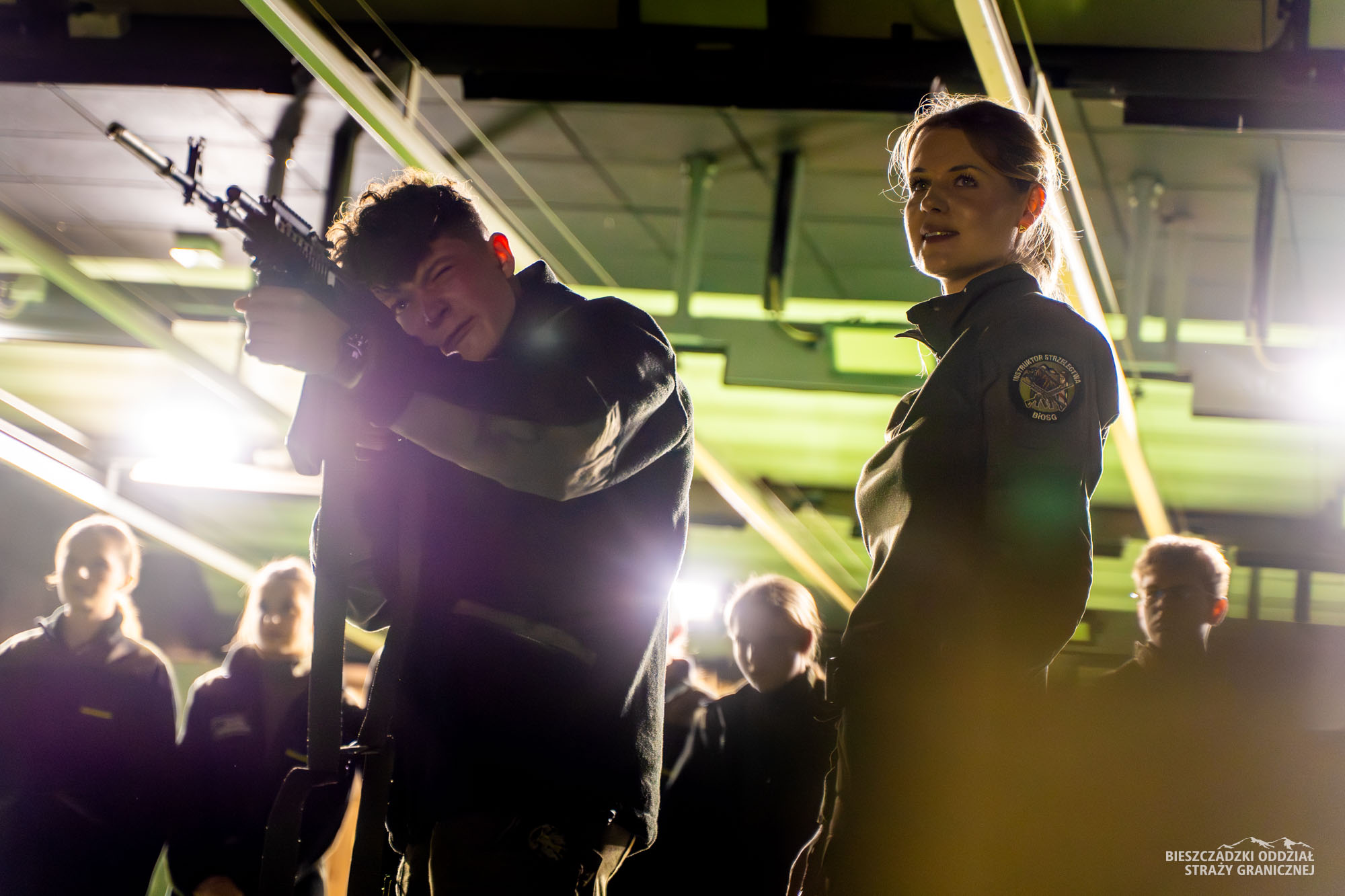 Dzisiaj (3 grudnia) z wizytą do Bieszczadzkiego OSG przybyła młodzież z Liceum Ogólnokształcącego im. Komisji Edukacji Narodowej w Dynowie. Podczas spotkania w komendzie oddziału uczniowie z klasy mundurowej poznali strukturę organizacyjną BiOSG oraz sprzęt i wyposażenie wykorzystywane do ochrony granicy. Licealiści odwiedzili strzelnicę i salę tradycji, w której znajdują się pamiątkowe eksponaty dotyczące historii SG. Jednym z elementów wizyty było również doskonalenie umiejętności strzeleckich z wykorzystaniem trenażera multimedialnego oraz zajęcia praktyczne dotyczące środków przymusu bezpośredniego.