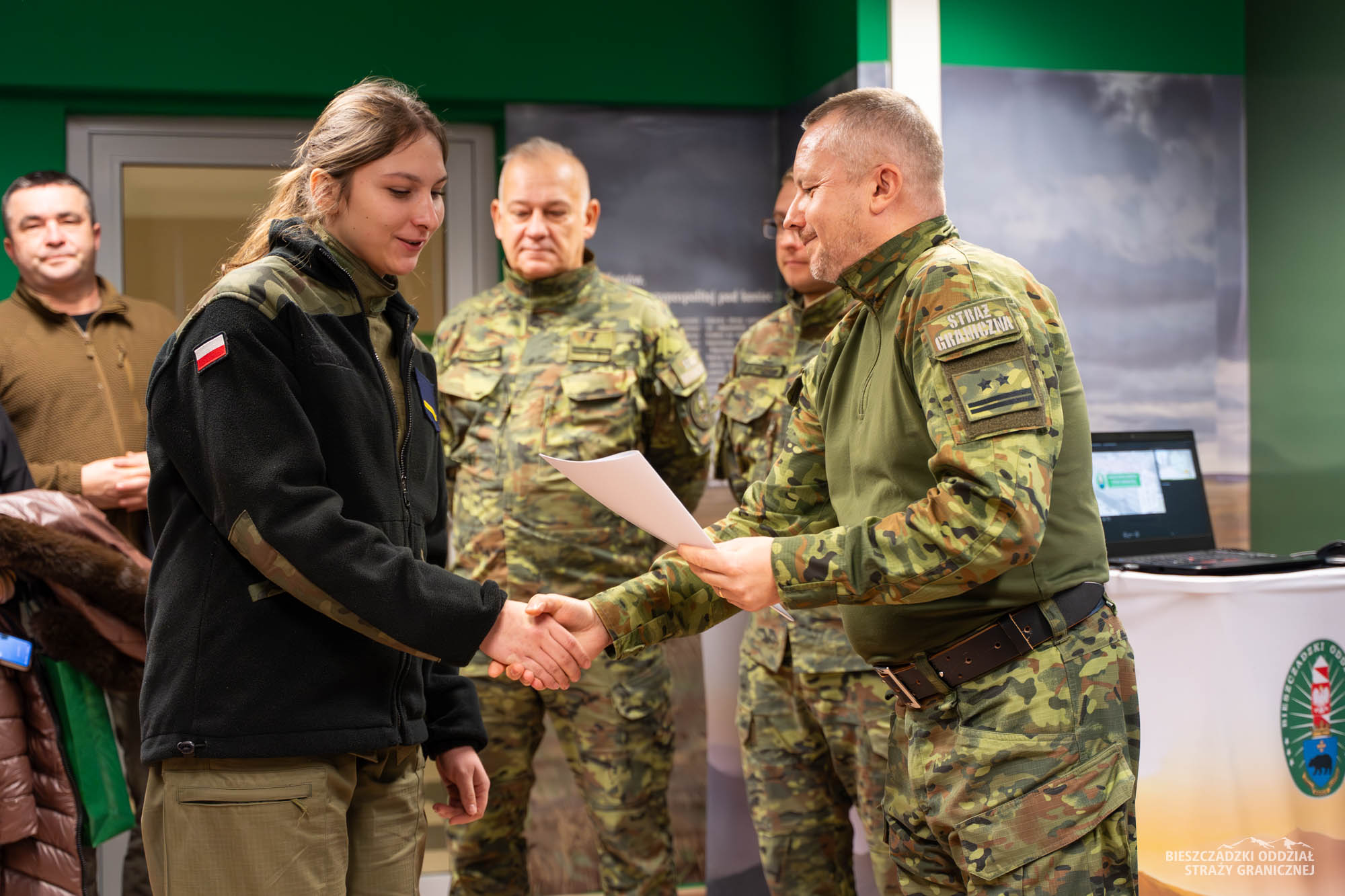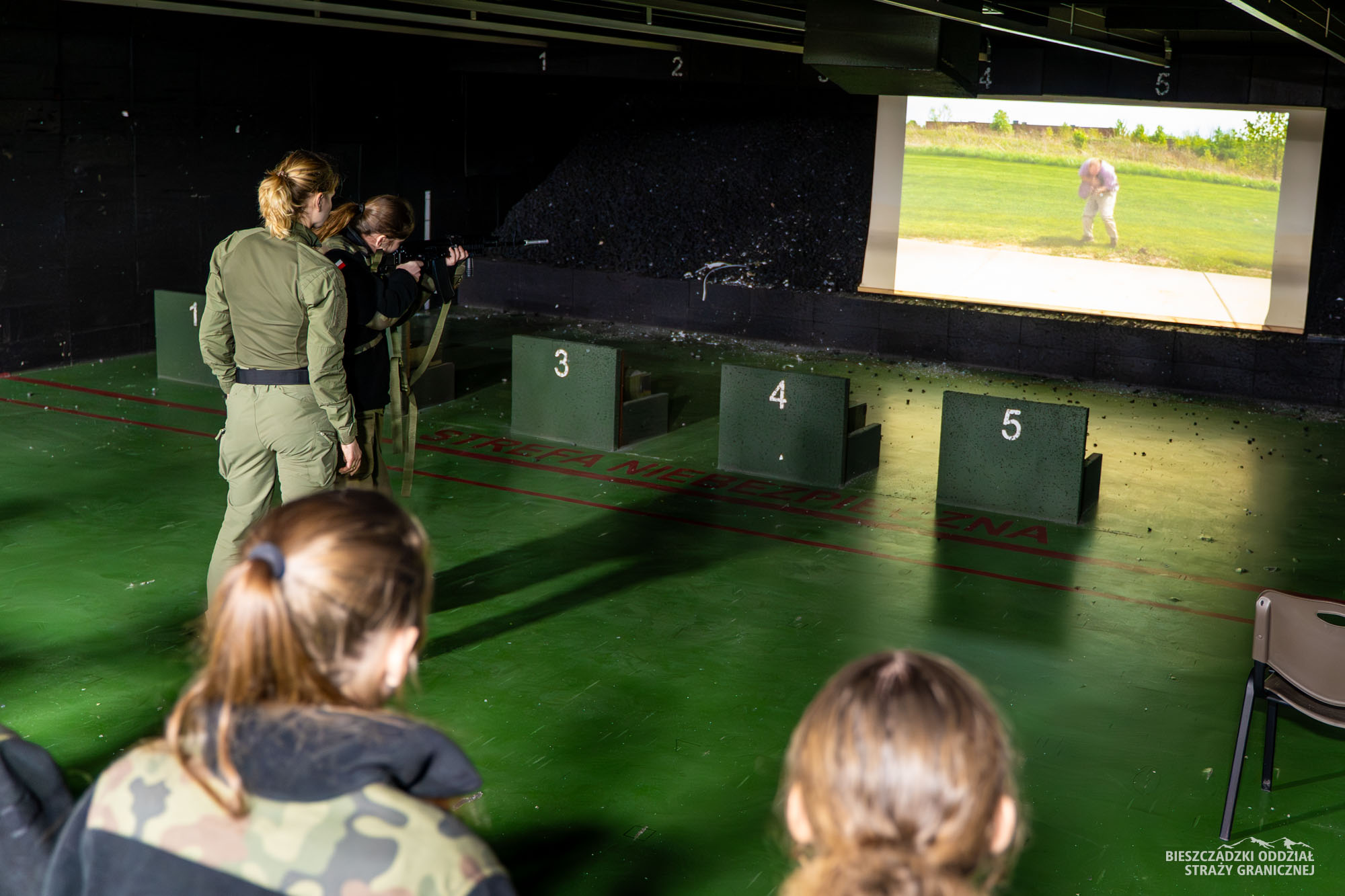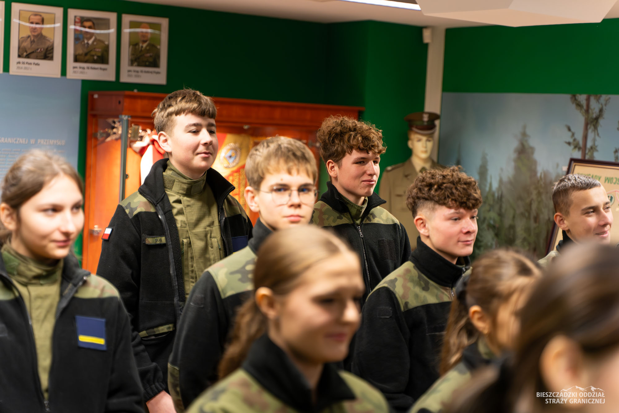 Dzisiaj (3 grudnia) z wizytą do Bieszczadzkiego OSG przybyła młodzież z Liceum Ogólnokształcącego im. Komisji Edukacji Narodowej w Dynowie. Podczas spotkania w komendzie oddziału uczniowie z klasy mundurowej poznali strukturę organizacyjną BiOSG oraz sprzęt i wyposażenie wykorzystywane do ochrony granicy. Licealiści odwiedzili strzelnicę i salę tradycji, w której znajdują się pamiątkowe eksponaty dotyczące historii SG. Jednym z elementów wizyty było również doskonalenie umiejętności strzeleckich z wykorzystaniem trenażera multimedialnego oraz zajęcia praktyczne dotyczące środków przymusu bezpośredniego.