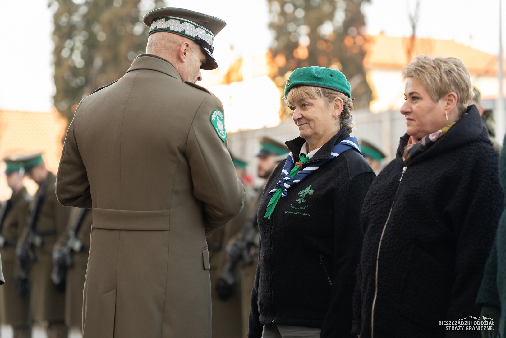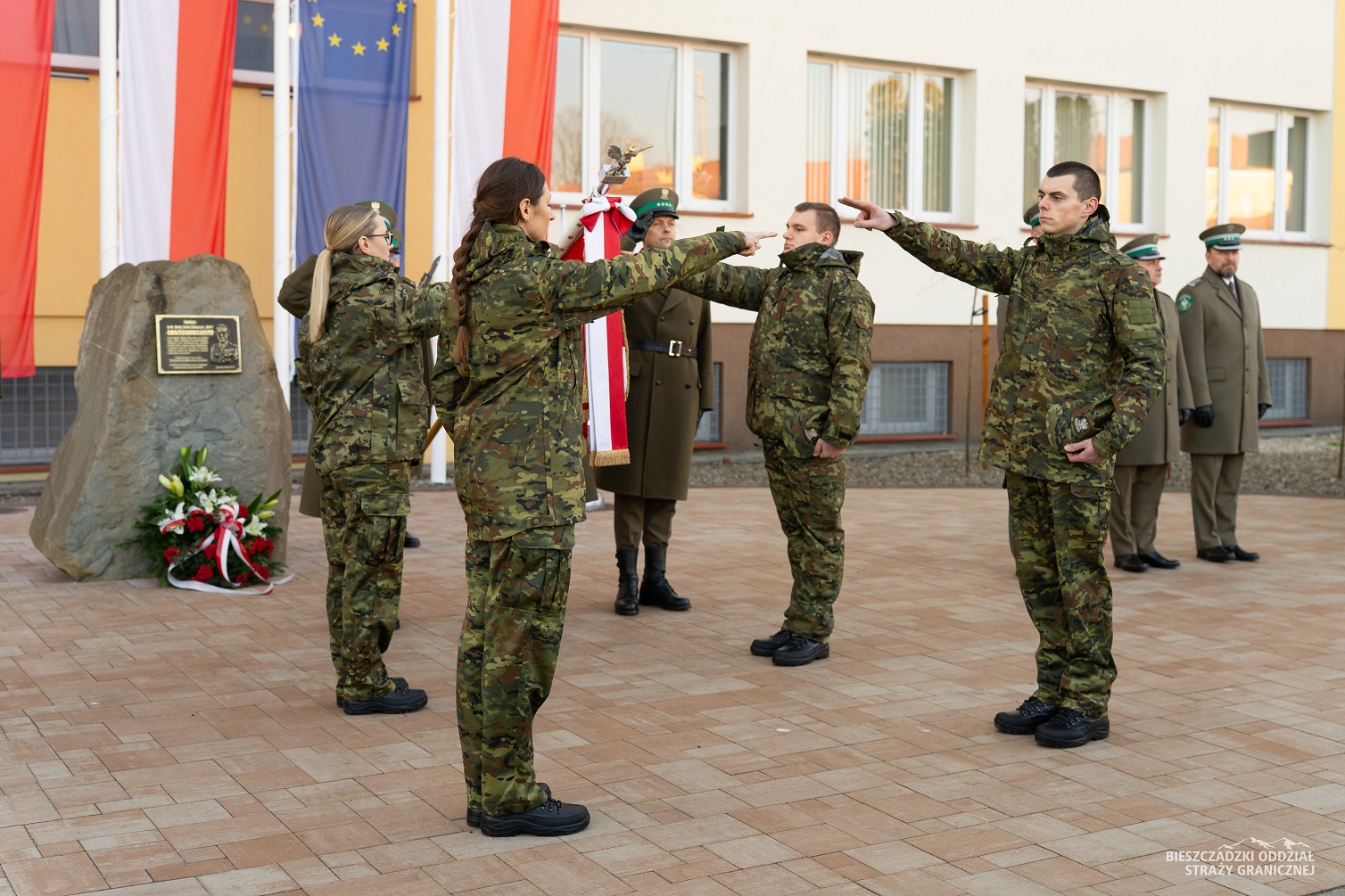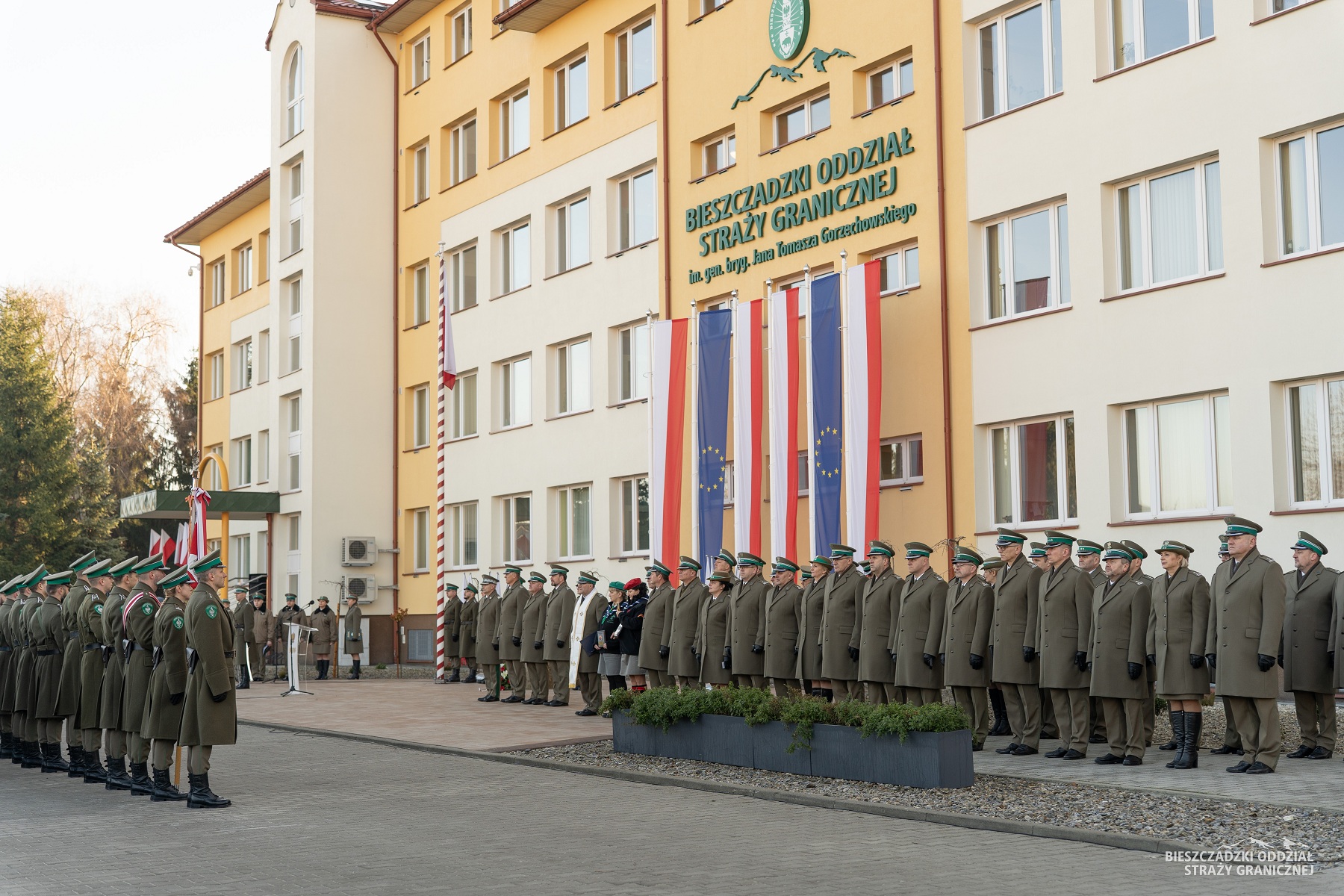 Gen. bryg. SG Tomasz Zybiński pogratulował nowo przyjętym funkcjonariuszom pozytywnego zakończenia procesu rekrutacji. Podkreślił, że funkcjonariusze rozpoczynają służbę graniczną, która wymaga dyscypliny i gotowości do działania w różnych warunkach. W sposób szczególny zwrócił się także do rodzin i najbliższych nowo wcielonych funkcjonariuszy BiOSG. Podkreślił ich szczególną rolę we wsparciu i zrozumieniu wyzwań, z jakimi będą mierzyć się mundurowi, to przede wszystkim dyspozycyjność i ciągłe zaangażowanie w działania zapewniające bezpieczeństwo Polski oraz zewnętrznej granicy UE.