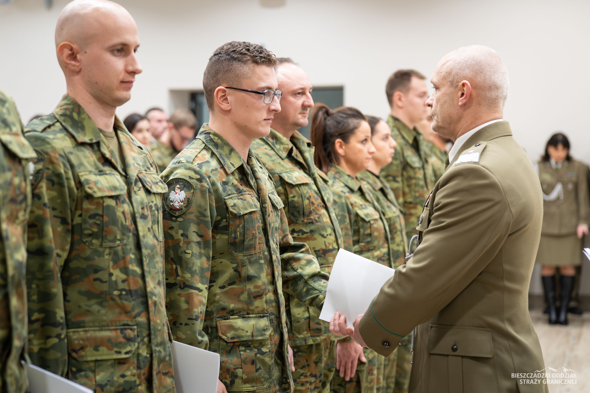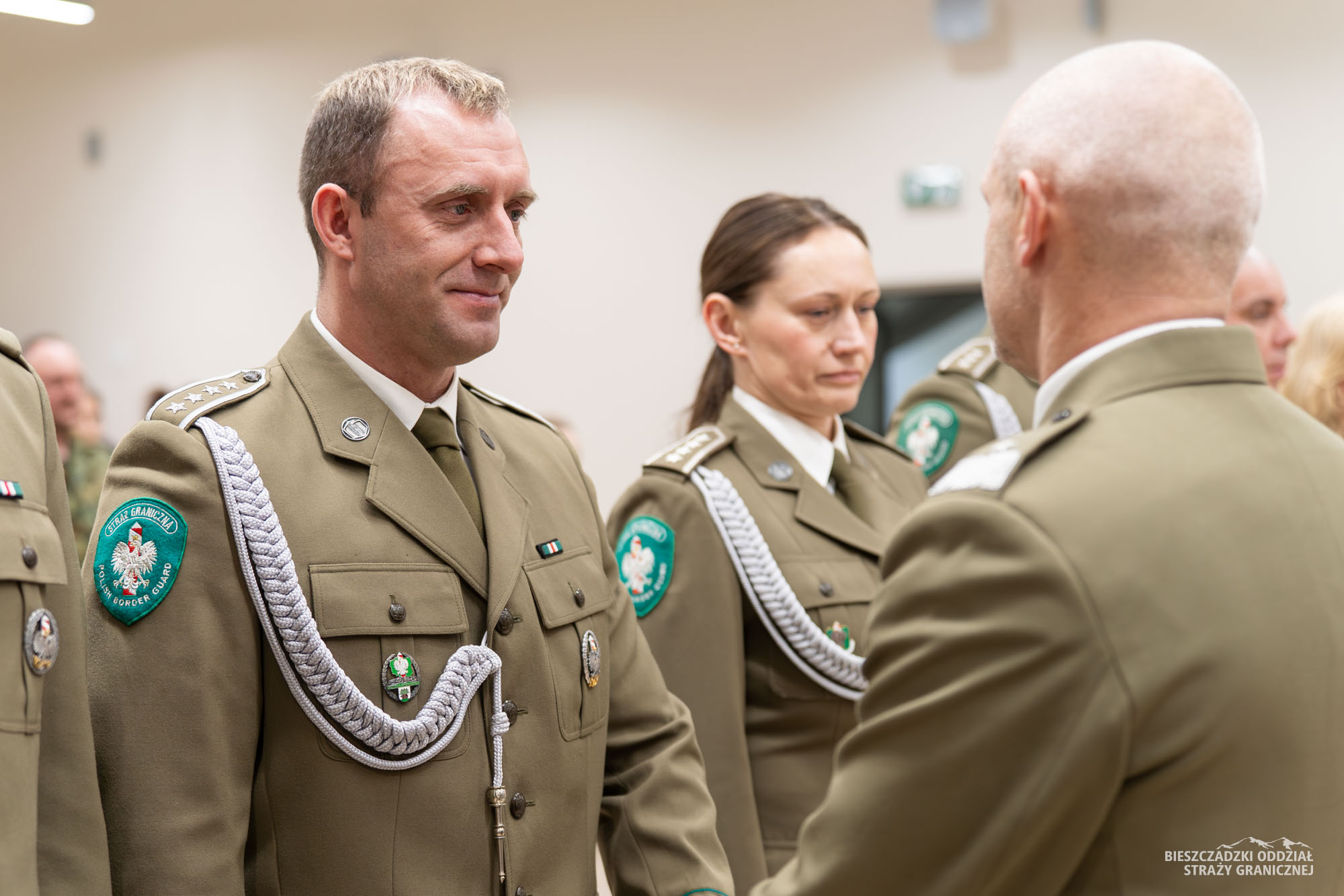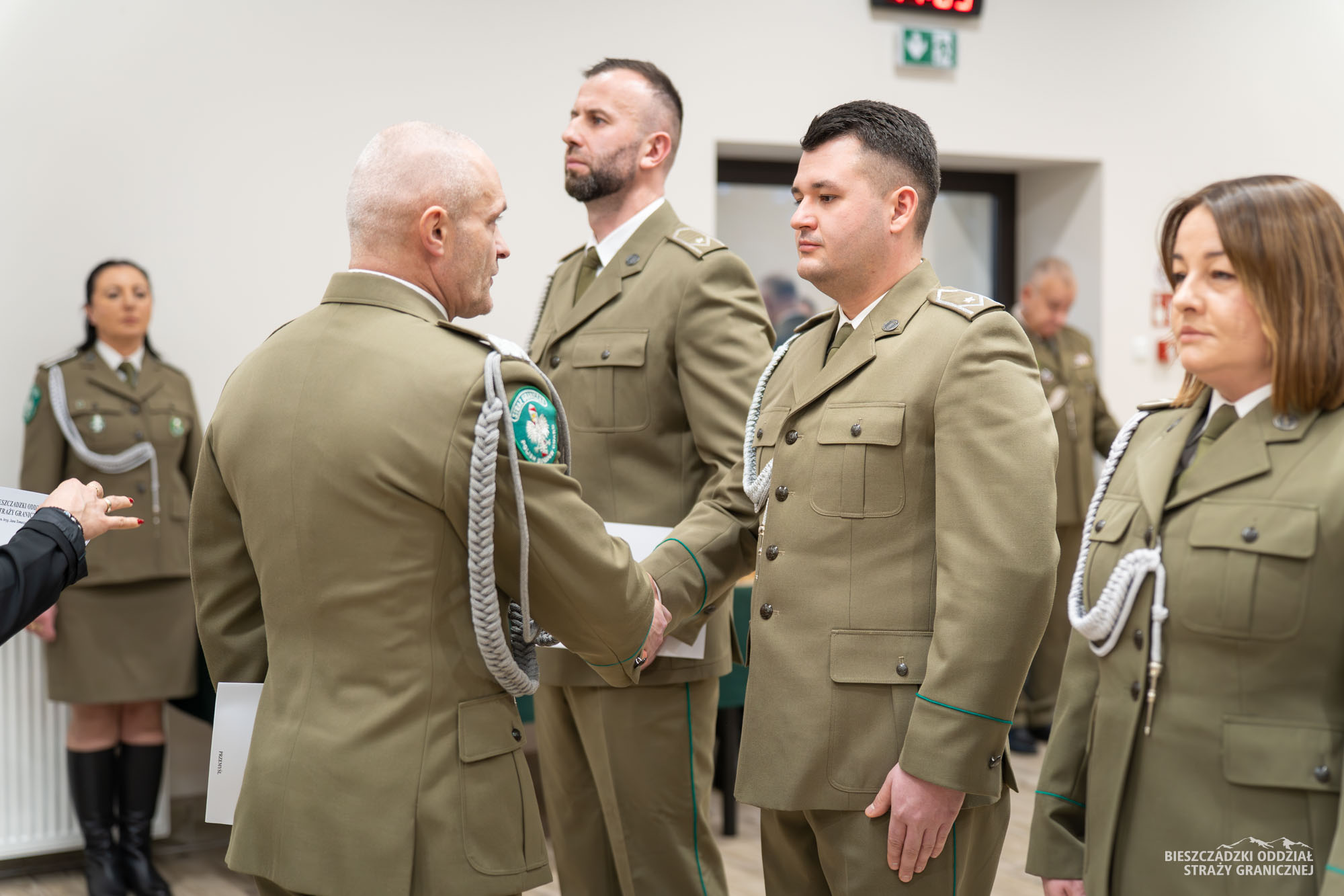 Komendant Bieszczadzkiego Oddziału SG pogratulował wyróżnionym i awansowanym funkcjonariuszom, a także życzył wytrwałości w pełnej wyzwań służbie.