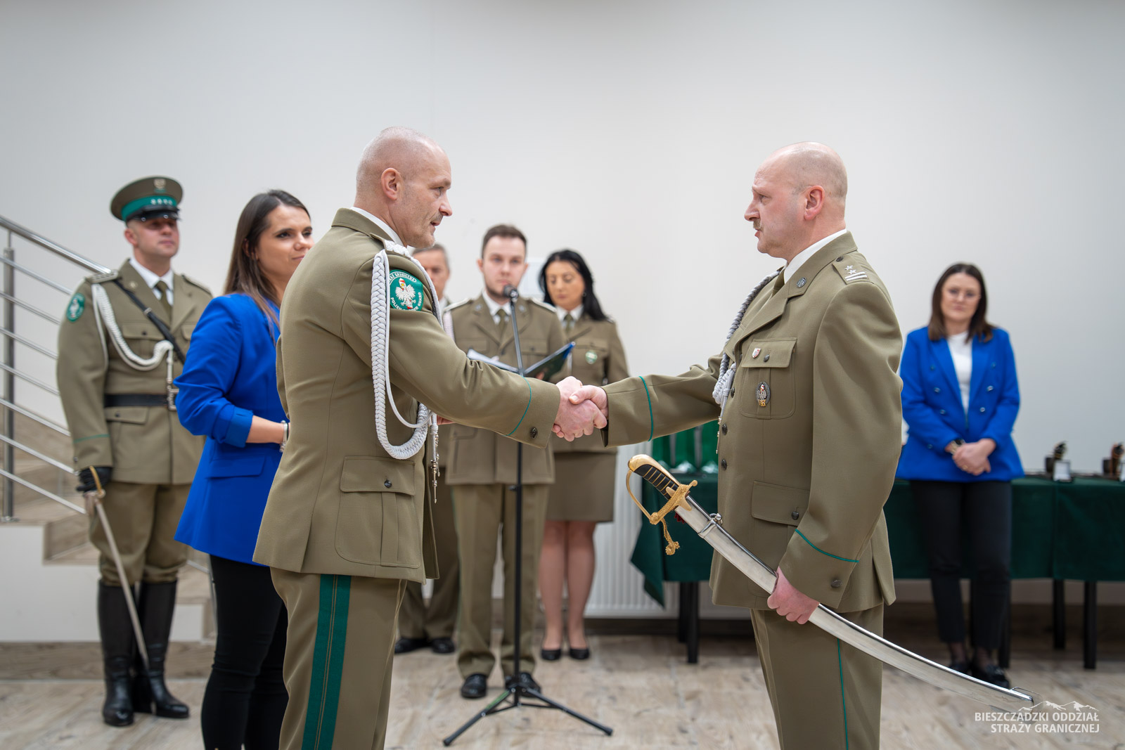Uroczystość odbyła się 12 lutego w auli komendy BiOSG. W asyście pocztu sztandarowego odśpiewano hymn państwowy. W zbiórce uczestniczyła kadra kierownicza BiOSG, funkcjonariusze oraz pracownicy oddziału. Za wieloletnią służbę strażnikom granicznym podziękował Komendant oddziału, gen. bryg. SG. Tomasz Zybiński. Część mundurowych odchodzących na emeryturę została mianowana na wyższe stopnie służbowe w korpusie oficerskim. W dowód uznania za wzorowo wypełnianą służbę płk SG Jacek Siara, płk SG Mariusz Krzyśkowski oraz ppłk SG Artur Lewicki otrzymali szable oficerskie. Żegnających się ze służbą uhonorowano okolicznościowymi wyróżnieniami i pamiątkami.