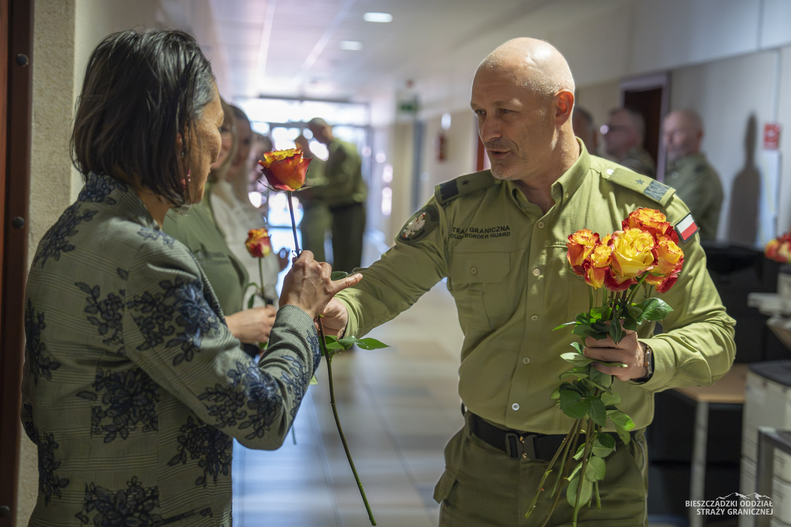 W piątek (6 marca) Komendant Bieszczadzkiego Oddziału SG odwiedził panie służące i pracujące w przemyskiej komendzie. Gen. bryg. SG Tomasz Zybiński wraz z Zastępcami, przedstawicielami zarządu oddziałowego NSZZ FSG przy BiOSG oraz kapelanami wręczył paniom kwiaty oraz złożył życzenia.