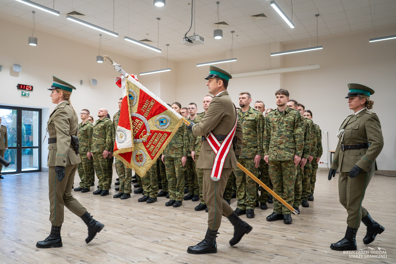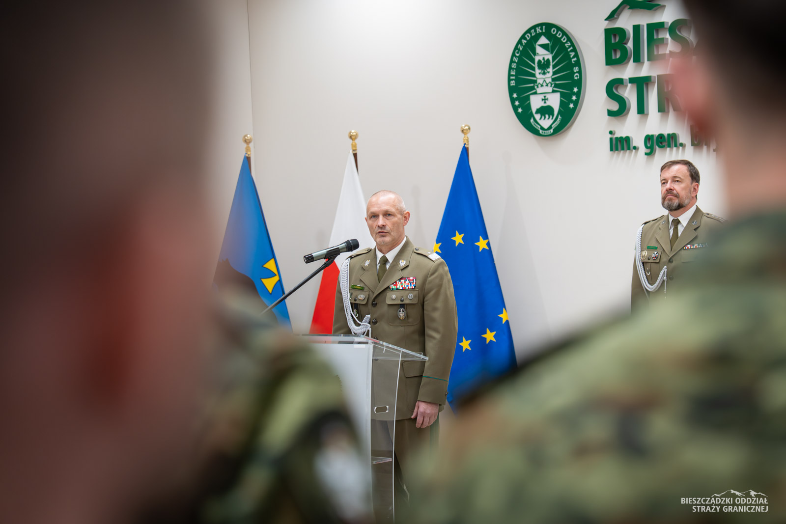 Zbiórkę zorganizowano 7 kwietnia w auli komendy BiOSG. W obecności kadry kierowniczej, Komendant oddziału gen. bryg. SG Tomasz Zybiński uroczyście wręczył akty mianowania. Ponad 40-osobowa grupa funkcjonariuszy ukończyła szkolenie podstawowe, a następnie podoficerskie w Ośrodku Szkoleń Specjalistycznych SG w Lubaniu. Komendant Bieszczadzkiego Oddziału SG pogratulował pozytywnego ukończenia szkoleń. Życzył wytrwałości w pełnej wyzwań służbie granicznej.