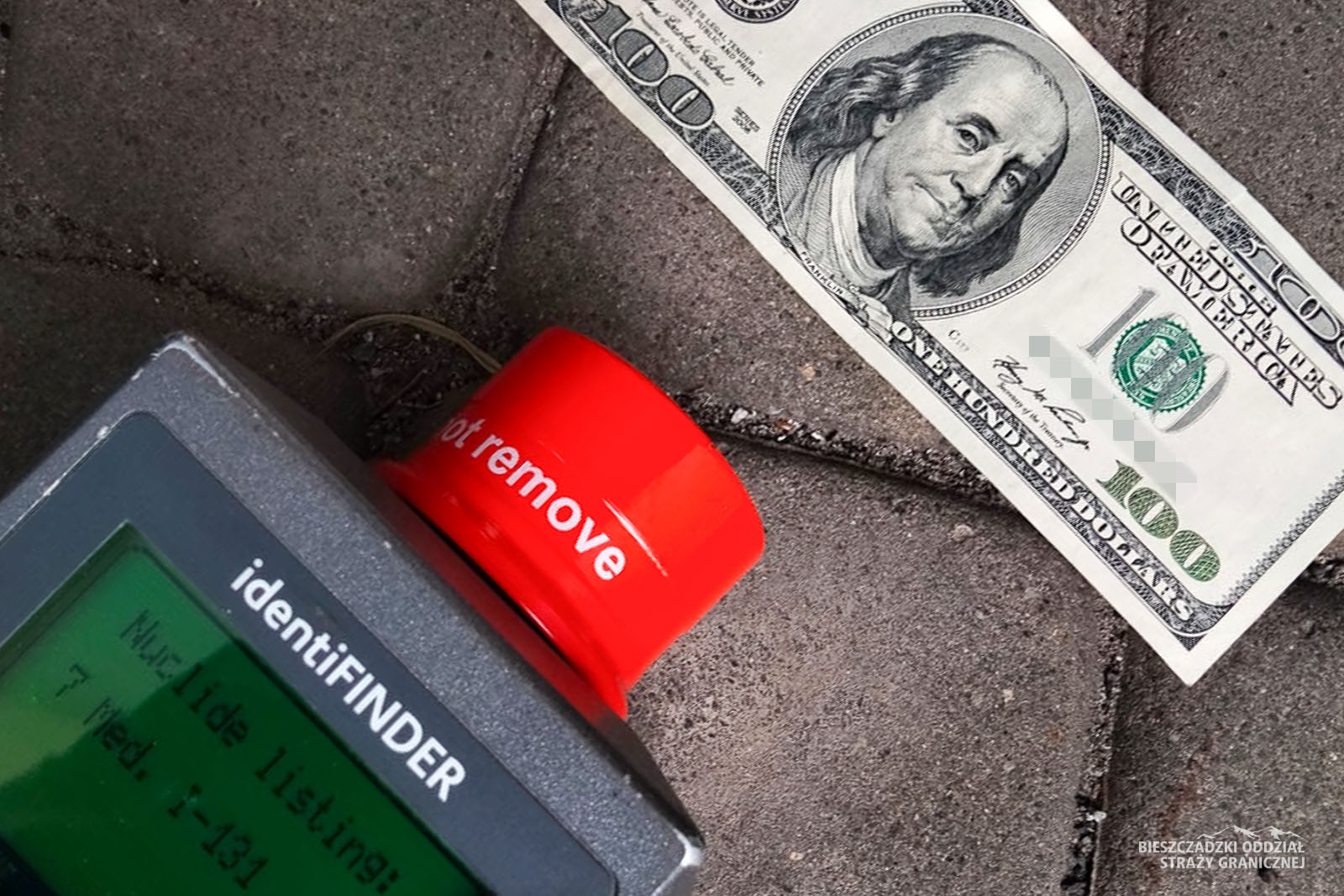 Do zdarzenia doszło 15 kwietnia br. podczas kontroli podróżnych wchodzących do Polski w Medyce. W momencie, gdy przez światło bramki radiometrycznej przechodziła 54-letnia obywatelka Ukrainy, uruchomił się sygnał informujący o znacznym przekroczeniu promieniowania. Zgodnie z procedurą funkcjonariusze Straży Granicznej odseparowali podróżną w celu szczegółowego sprawdzenia. Jak się okazało, kobieta przenosiła w bagażu 9900 dolarów amerykańskich. Weryfikacja z wykorzystaniem mobilnego sprzętu wykazała, że jeden z banknotów 1905-krotnie przekracza tło promieniowania. Jak się okazało, promieniowanie dotyczyło izotopu stosowanego w lecznictwie. Mundurowi zabezpieczyli studolarówkę w dedykowanym pojemniku, a zdarzenie skonsultowali z Państwową Agencją Atomistyki.