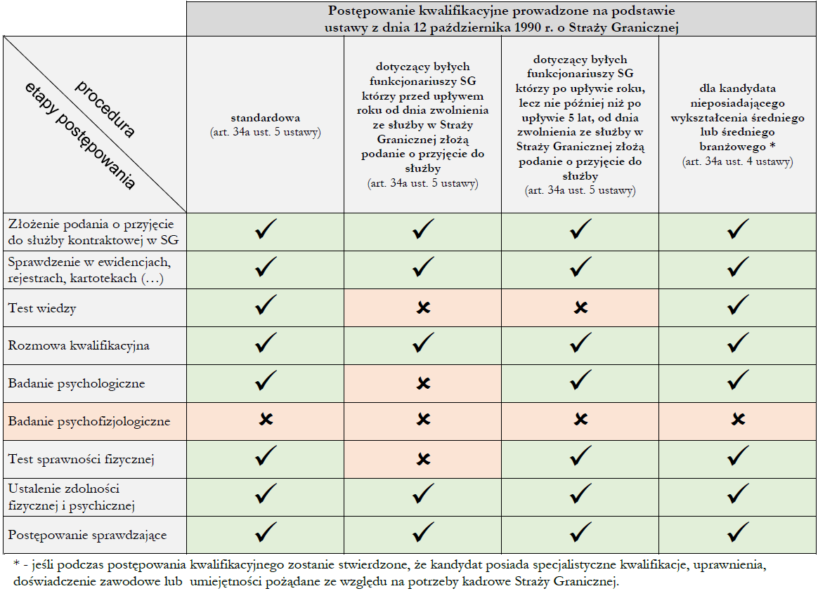 W przypadku kandydata, który przed upływem roku od dnia zwolnienia ze służby w Straży Granicznej złożył podanie o przyjęcie do służby, postępowanie kwalifikacyjne składa się z następujących etapów: