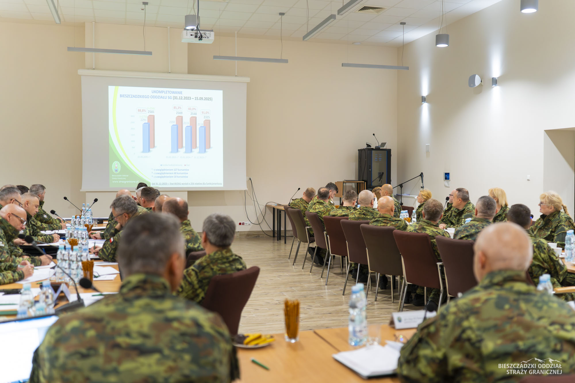 Komendant Bieszczadzkiego Oddziału SG przedstawił m.in. zagadnienia dotyczące ochrony granicy państwowej i sytuacji migracyjnej na ochranianym odcinku, a także podsumował efekty działań oddziału w roku bieżącym.