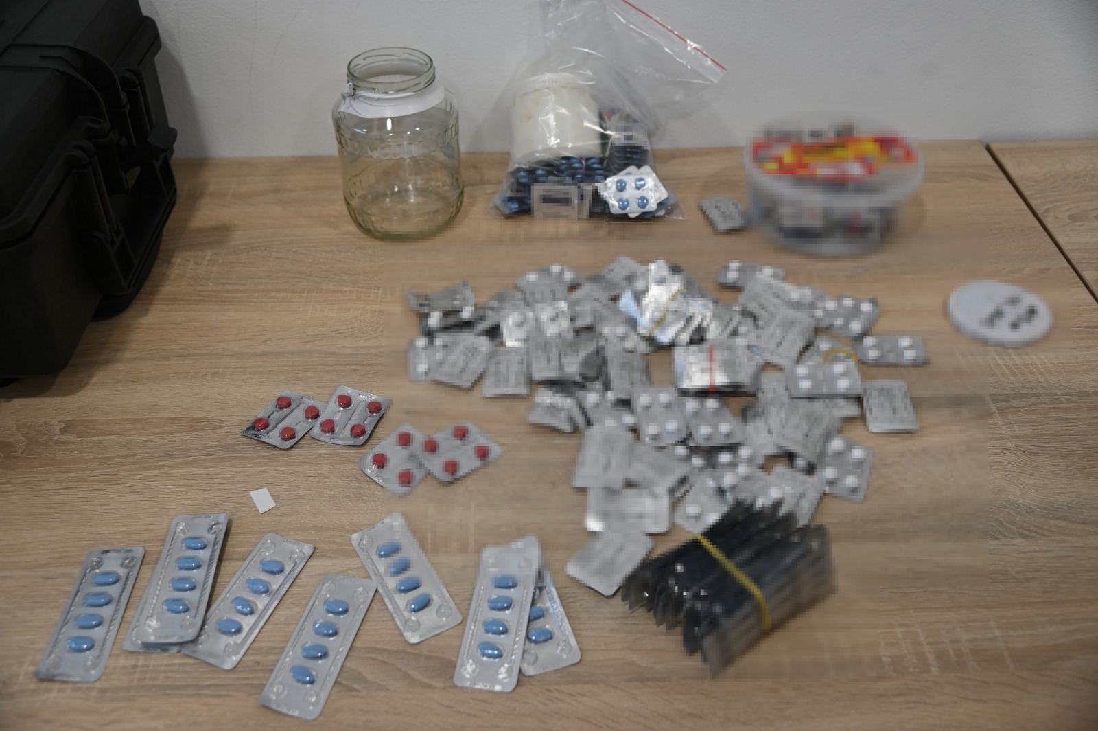 Do zdarzenia doszło w październiku na terenie Przemyśla. Funkcjonariusze śledczy z placówki SG w Hermanowicach i policjanci z KMP w Przemyślu skontrolowali 48-letniego mieszkańca Przemyśla. Mężczyzna przenosił w torbie 100 paczek papierosów bez polskich znaków akcyzy. Podczas przeszukania jego miejsca zamieszkania i użytkowanych pomieszczeń gospodarczych funkcjonariusze wykryli kolejne nielegalne papierosy oraz narkotyki. Wsparcia udzielili przemyscy funkcjonariusze Służby Celno-Skarbowej wraz z psem służbowym. Łącznie zabezpieczono prawie kilogram środków odurzających w postaci skrystalizowanej substancji  psychotropowej – klefedronu, 3,4 tys. paczek nielegalnych papierosów oraz ponad 700 tabletek na potencję. Wykryta ilość klefedronu wystarczyłaby do przygotowania ponad trzech tysięcy działek handlowych.  Wartość wszystkich ujawnionych towarów wynosi przeszło 120 tys. zł. Zabezpieczone narkotyki i leki zostały przebadane w laboratorium Celno-Skarbowym w Przemyślu.