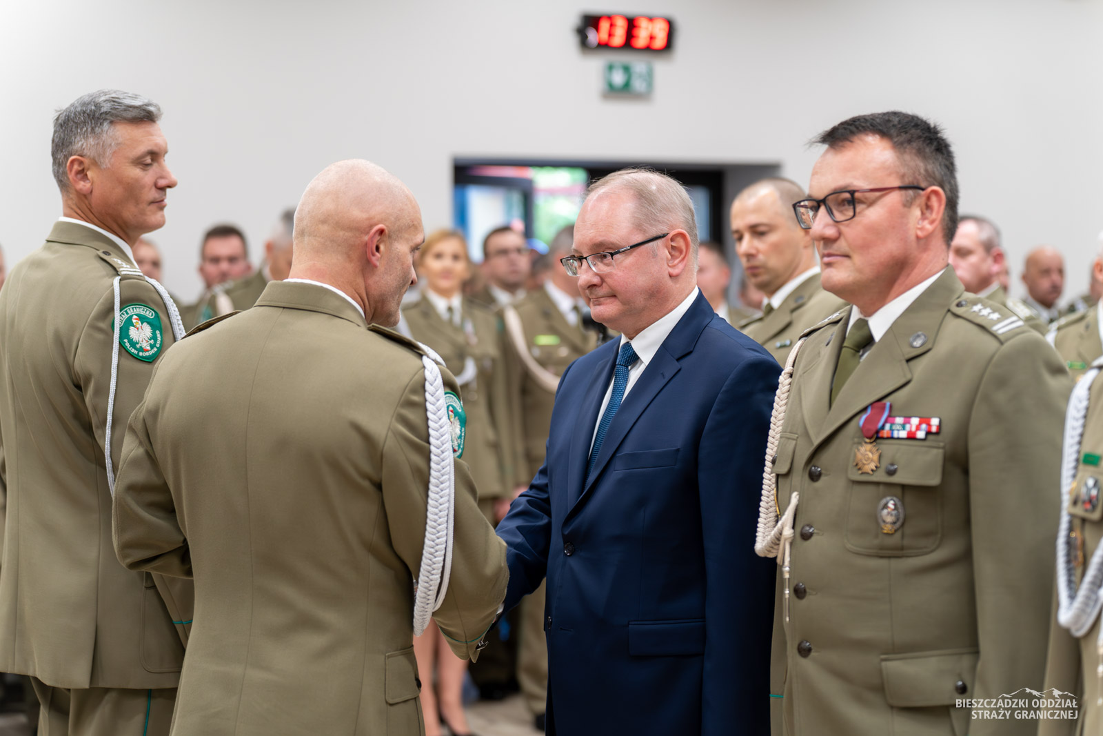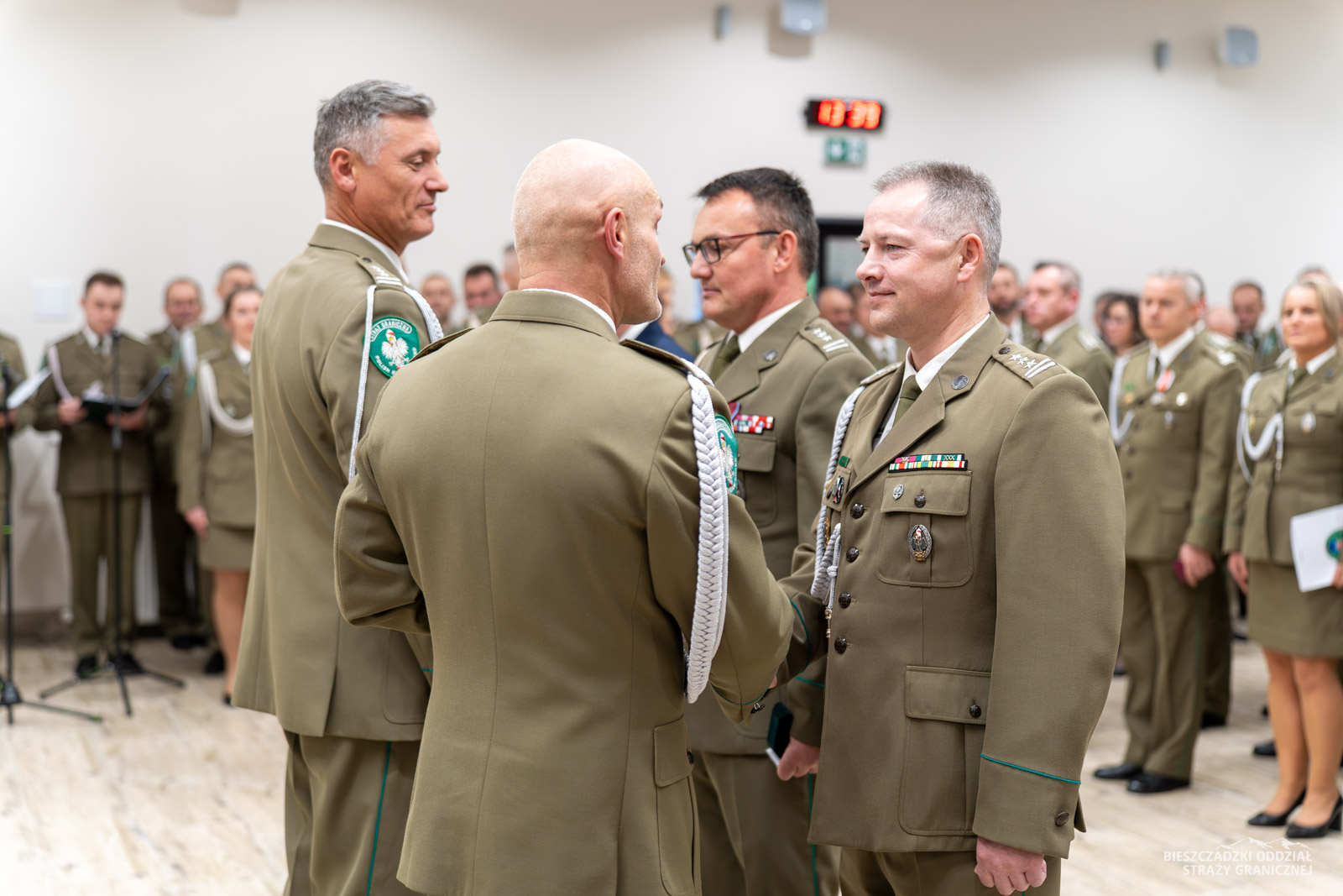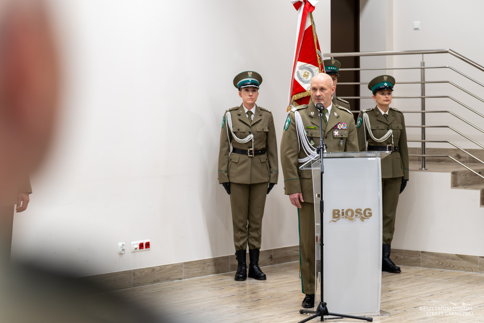 Zwracając się do zgromadzonych, Komendant BiOSG podkreślił rolę i wyzwania jakie stoją aktualnie przed Bieszczadzkim Oddziałem SG i całą formacją. Pogratulował także awansowanym i wyróżnionym. W sposób szczególny zwrócił się do przybyłych gości reprezentujących instytucje oraz służby, które na co dzień współpracują z odziałem.