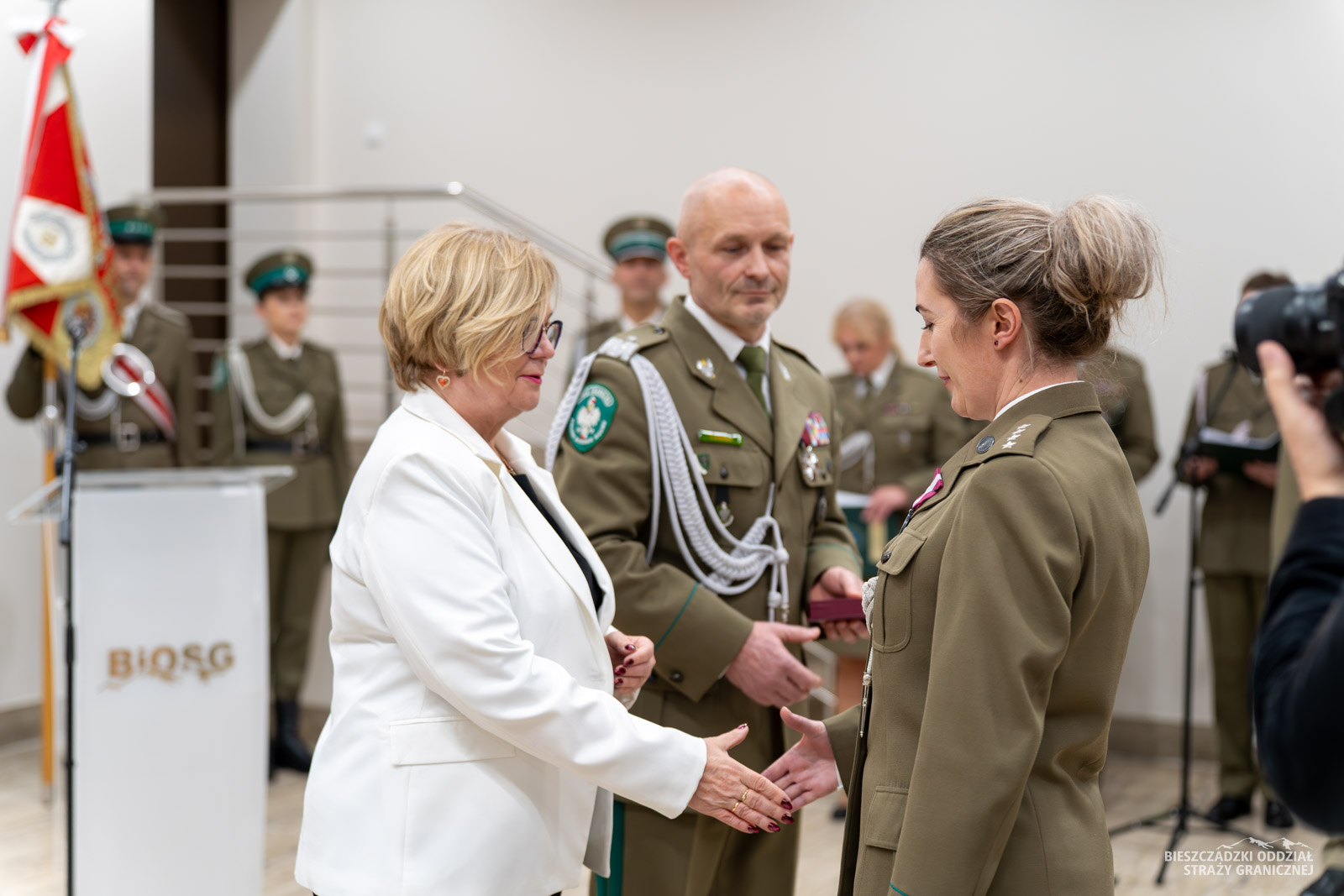 Święto Niepodległości to również okazja do wręczenia aktów mianowania na wyższe stopnie służbowe, medali i wyróżnień. W BiOSG 18 funkcjonariuszy korpusu oficerów uzyskało awanse na kolejne stopnie, 80 strażników granicznych zostało mianowanych na wyższe stopnie w korpusie chorążych oraz 194 w korpusie podoficerów.