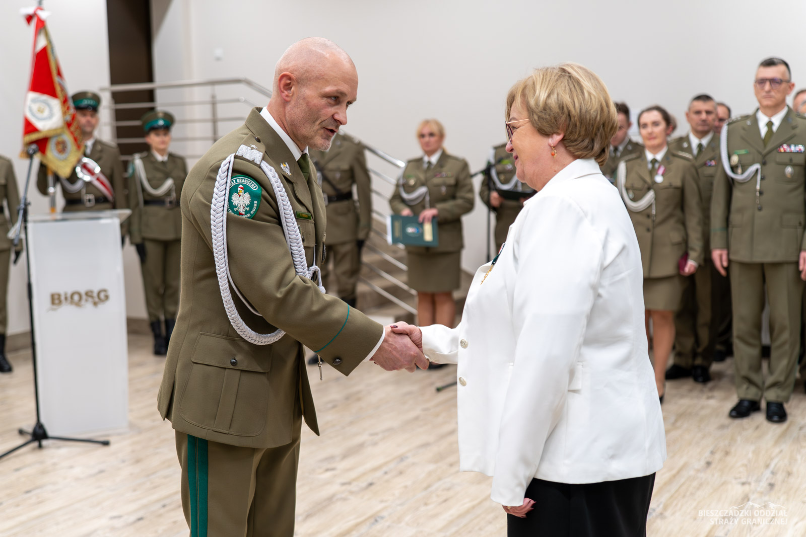 Wojewoda pogratulowała także wszystkim awansowanym oraz wyróżnionym podkreślając, że „zaszczyty są symbolem wdzięczności za wierną służbę Rzeczypospolitej, za gotowość do obrony jej granic i bezpieczeństwa obywateli”.