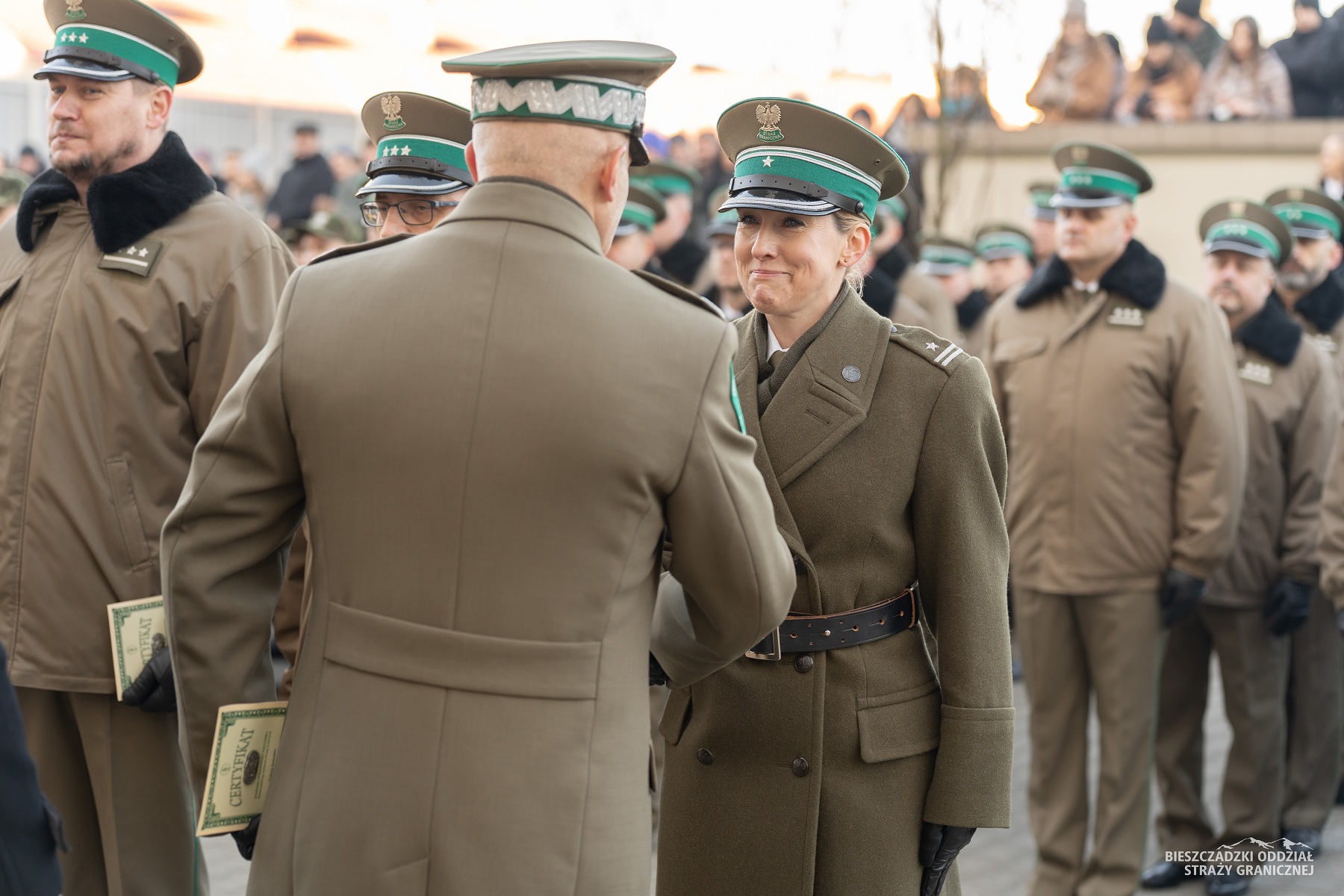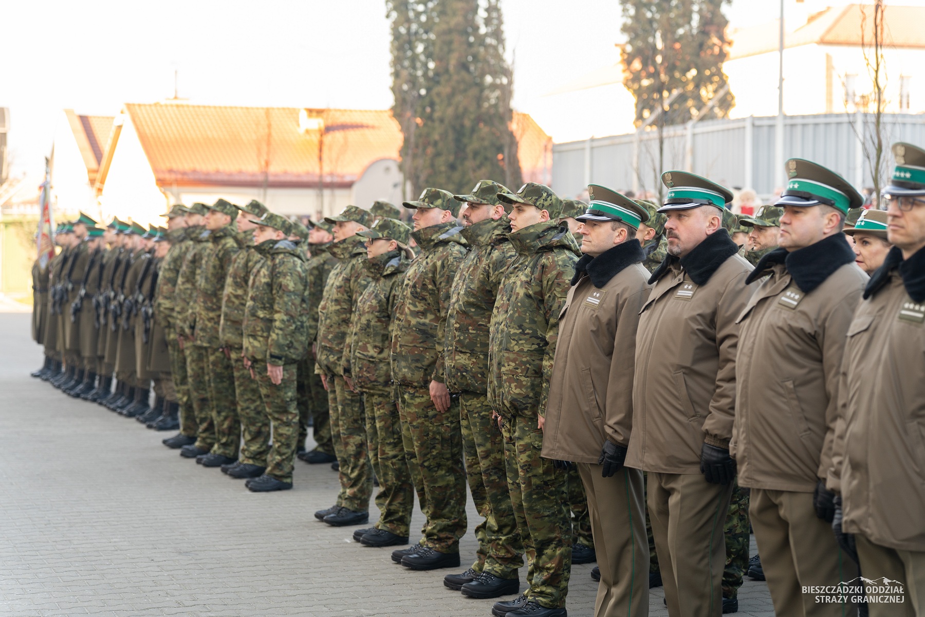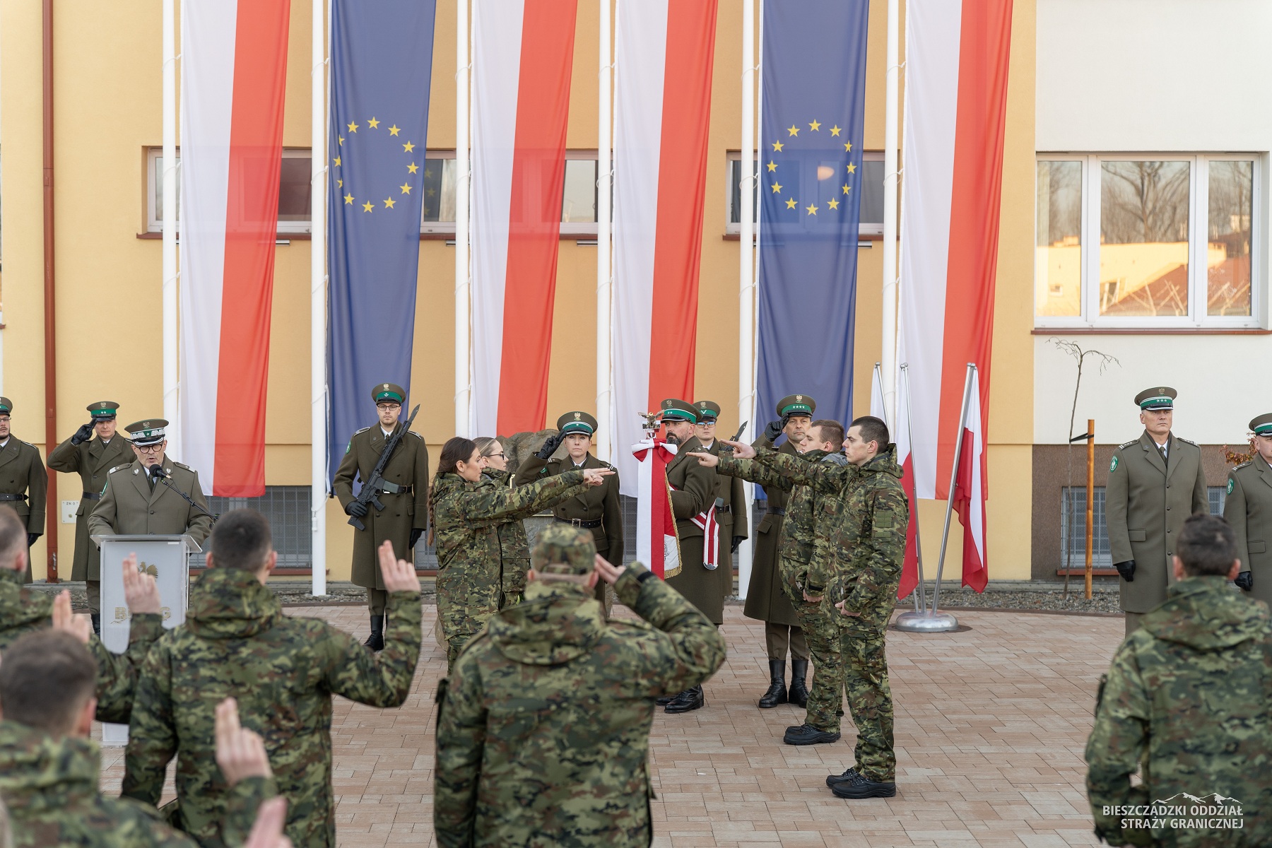 Podczas apelu nowi strażnicy graniczni złożyli uroczyste ślubowanie na sztandar oddziału. Wypowiadając słowa roty stali się pełnoprawnymi funkcjonariuszami. W 49-osobowej grupie mundurowych jest 26 mężczyzn i 23 kobiety. Wszyscy są mieszkańcami Podkarpacia. Większość ma wykształcenie średnie. W najbliższych dniach wyjadą do Ośrodka Szkoleń Specjalistycznych SG w Lubaniu, po ukończeniu szkoleń i zdaniu egzaminów trafią do służby w podkarpackich placówkach SG.
