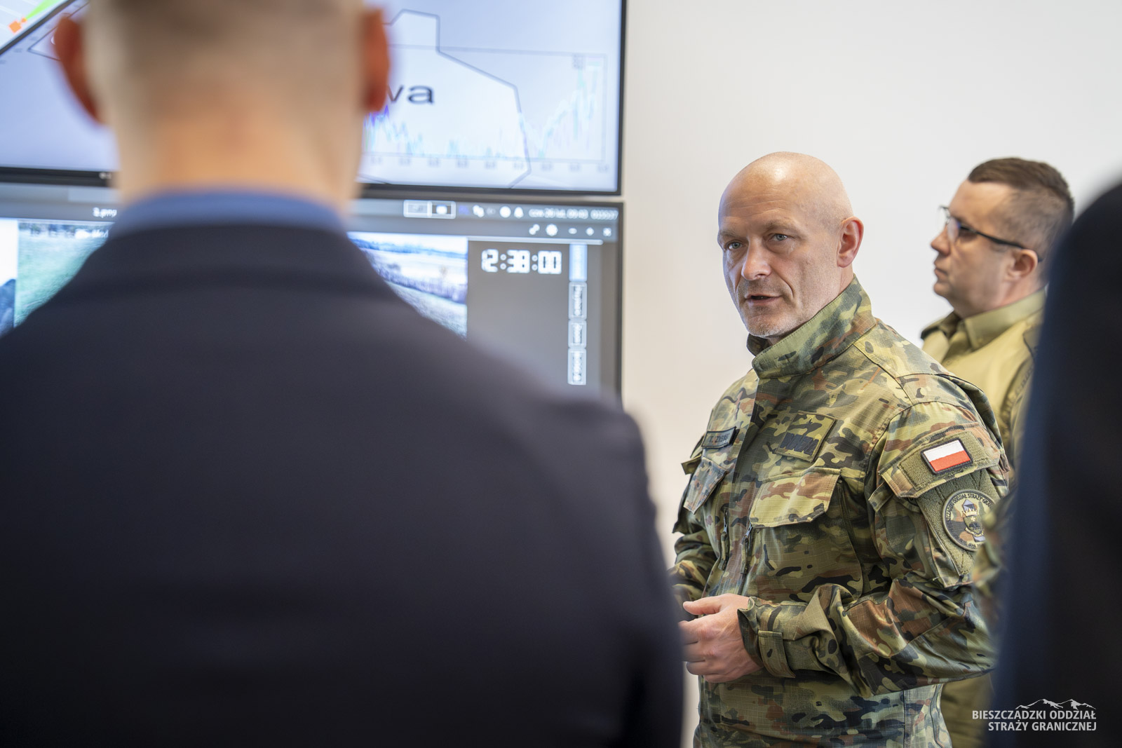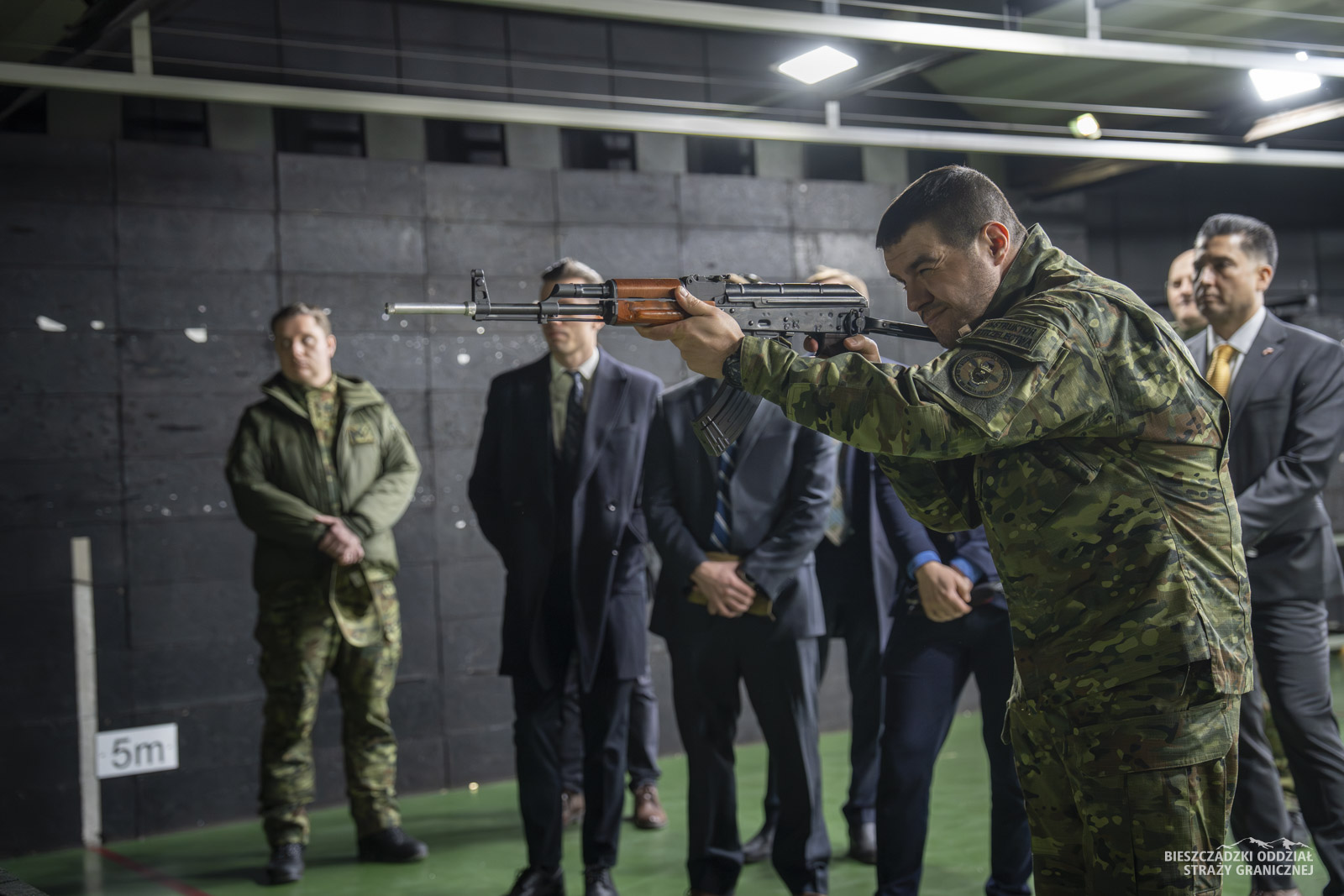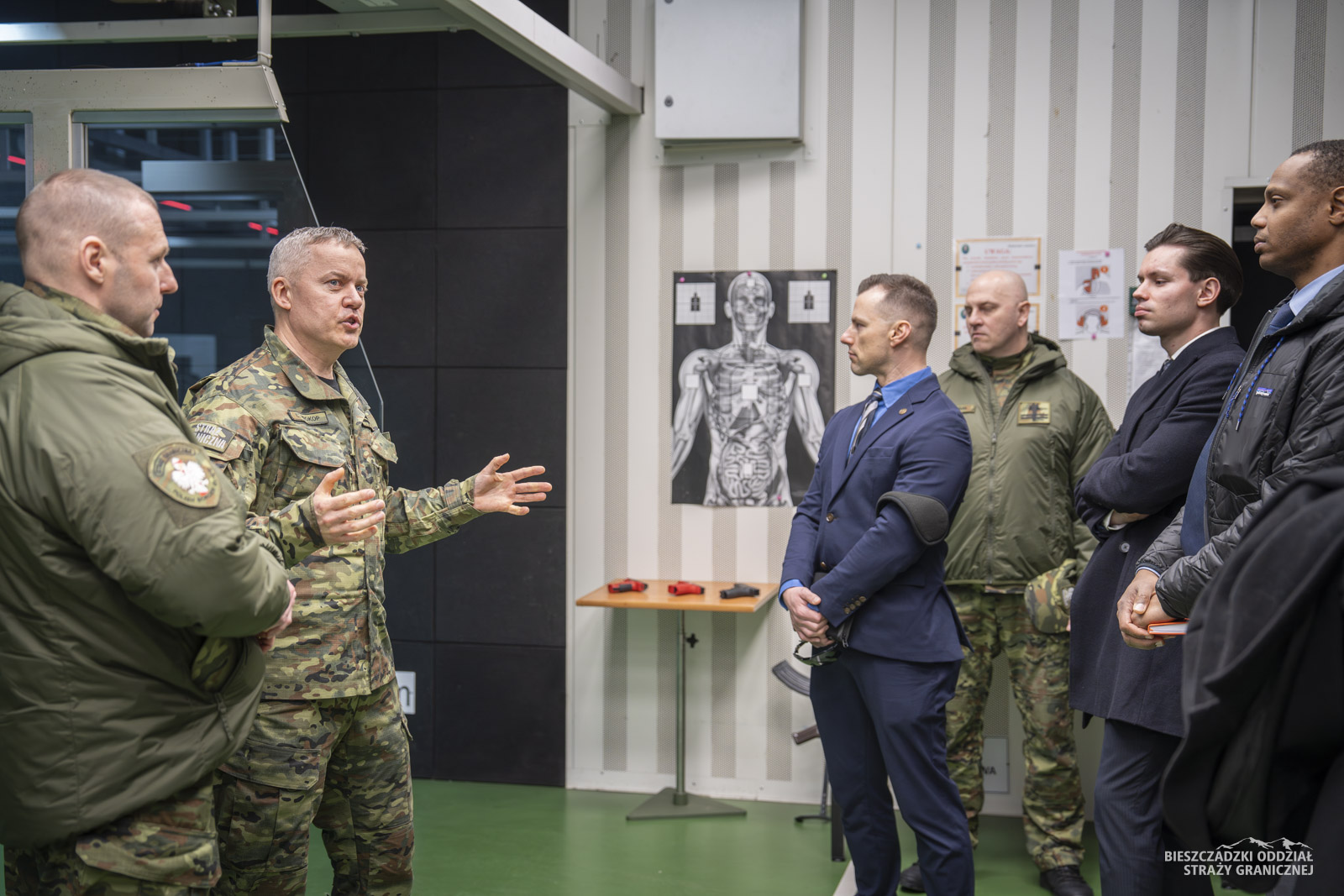 Wizytowano także centrum nadzoru obsługujące system perymetryczny działający na granicy polsko-ukraińskiej, gdzie omówiono funkcjonowanie bariery elektronicznej oraz pomieszczenie dyżurnego operacyjnego. Goście odwiedzili także nowoczesną strzelnicę BiOSG.