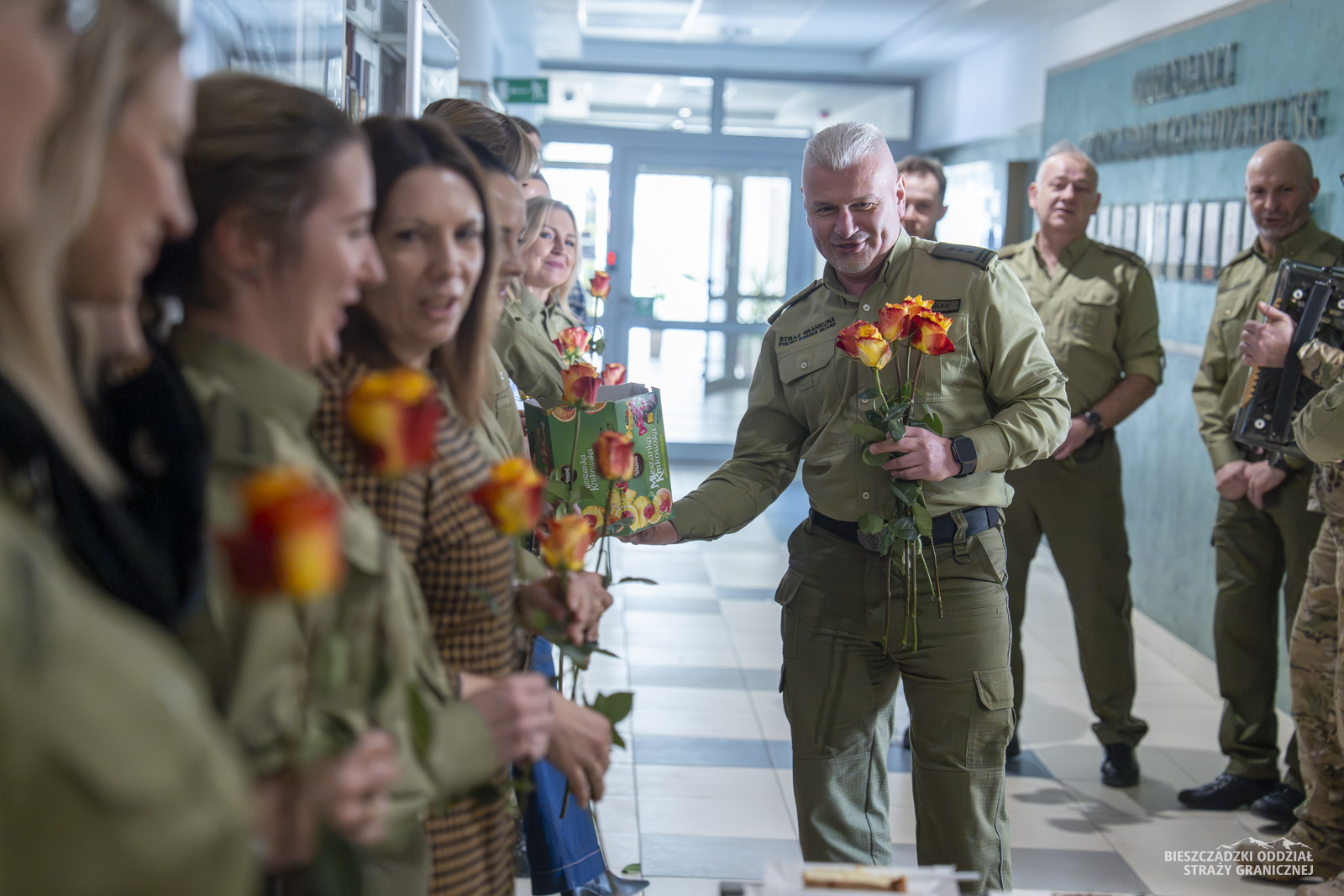 W piątek (6 marca) Komendant Bieszczadzkiego Oddziału SG odwiedził panie służące i pracujące w przemyskiej komendzie. Gen. bryg. SG Tomasz Zybiński wraz z Zastępcami, przedstawicielami zarządu oddziałowego NSZZ FSG przy BiOSG oraz kapelanami wręczył paniom kwiaty oraz złożył życzenia.