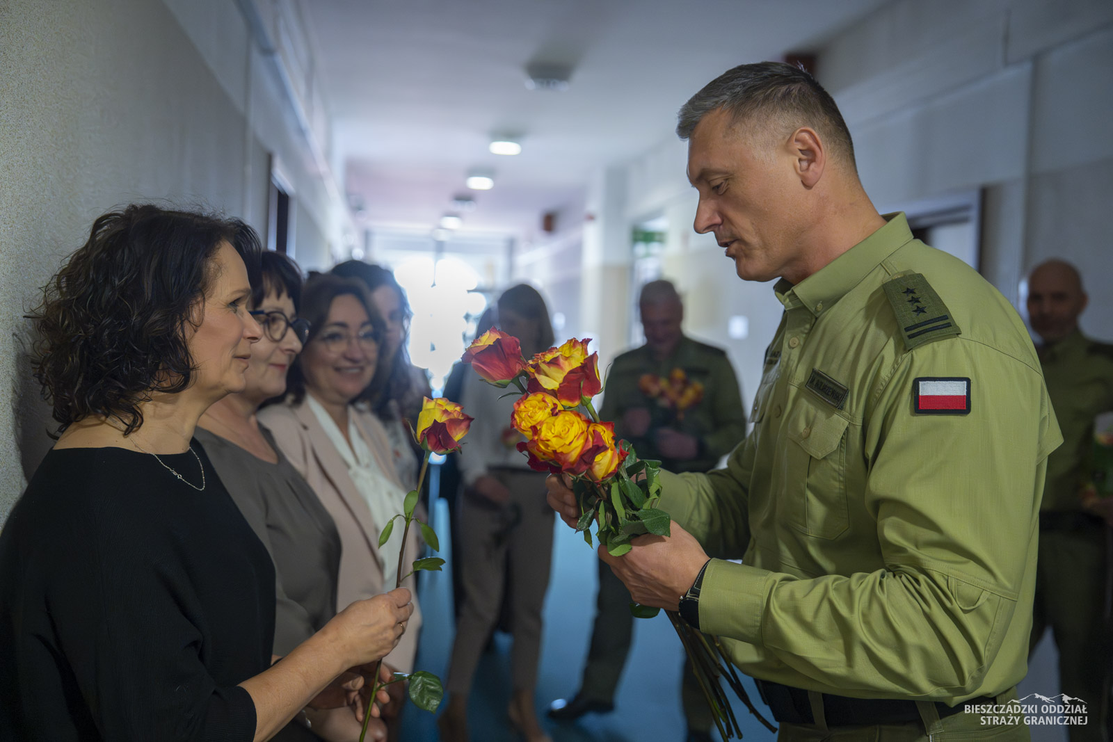 Wręczenie kwiatów funkcjonariuszkom i pracownicom BiOSG -
