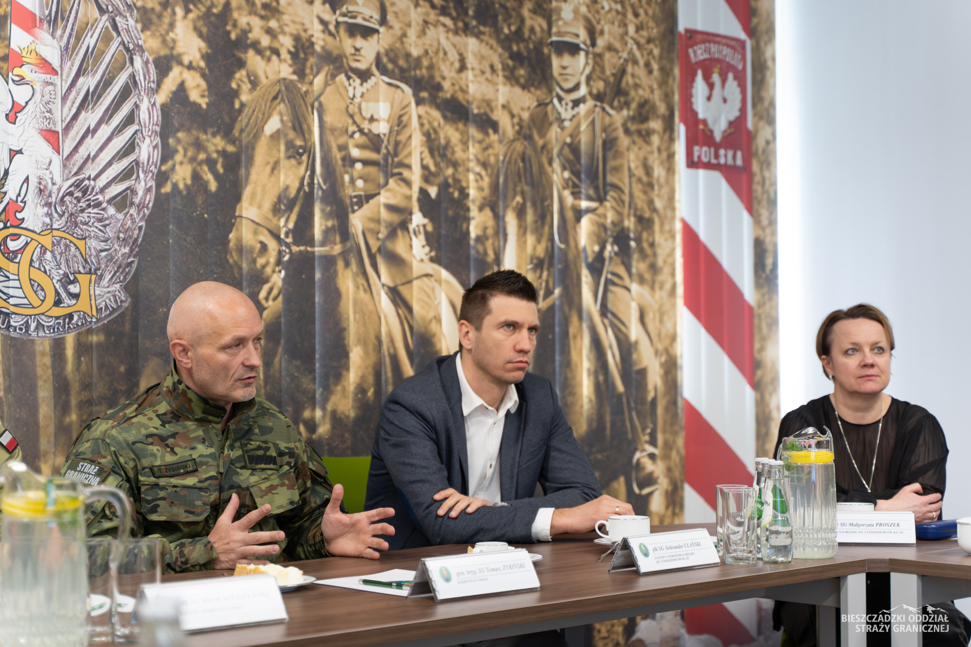 Podczas spotkania omówiono kwestie związane z charakterystyką obecnych wyzwań migracyjnych z perspektywy Bieszczadzkiego Oddziału SG, a także przybliżono tematy dotyczące identyfikacji, umieszczania oraz pobytu cudzoziemców w strzeżonym ośrodku.