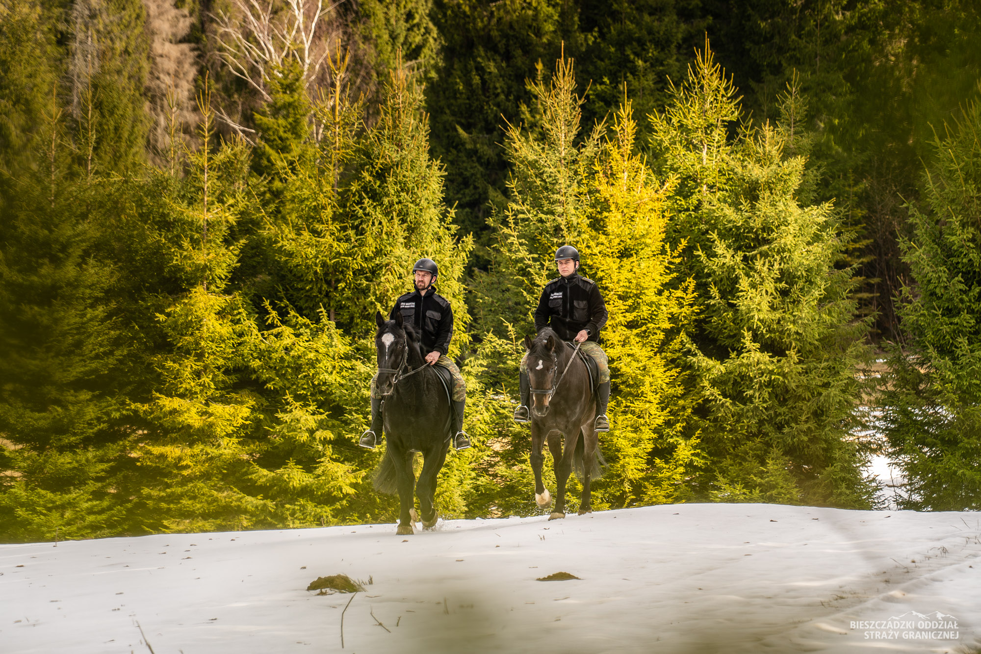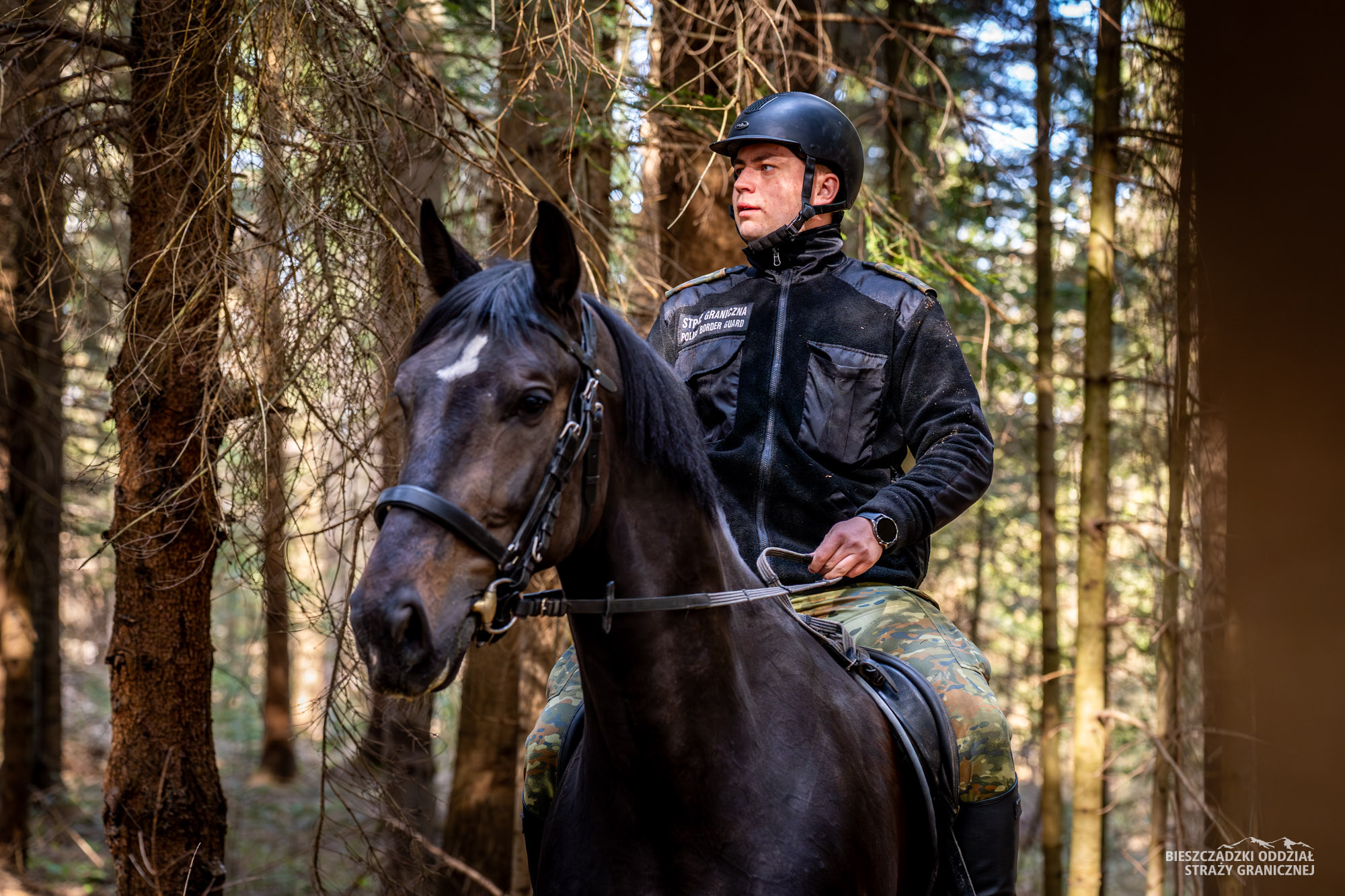 Osiem koni wspiera w codziennej służbie funkcjonariuszy SG z placówek w Ustrzykach Górnych i Czarnej Górnej. Patrole konne realizowane są m.in. na obszarze Bieszczadzkiego Parku Narodowego.