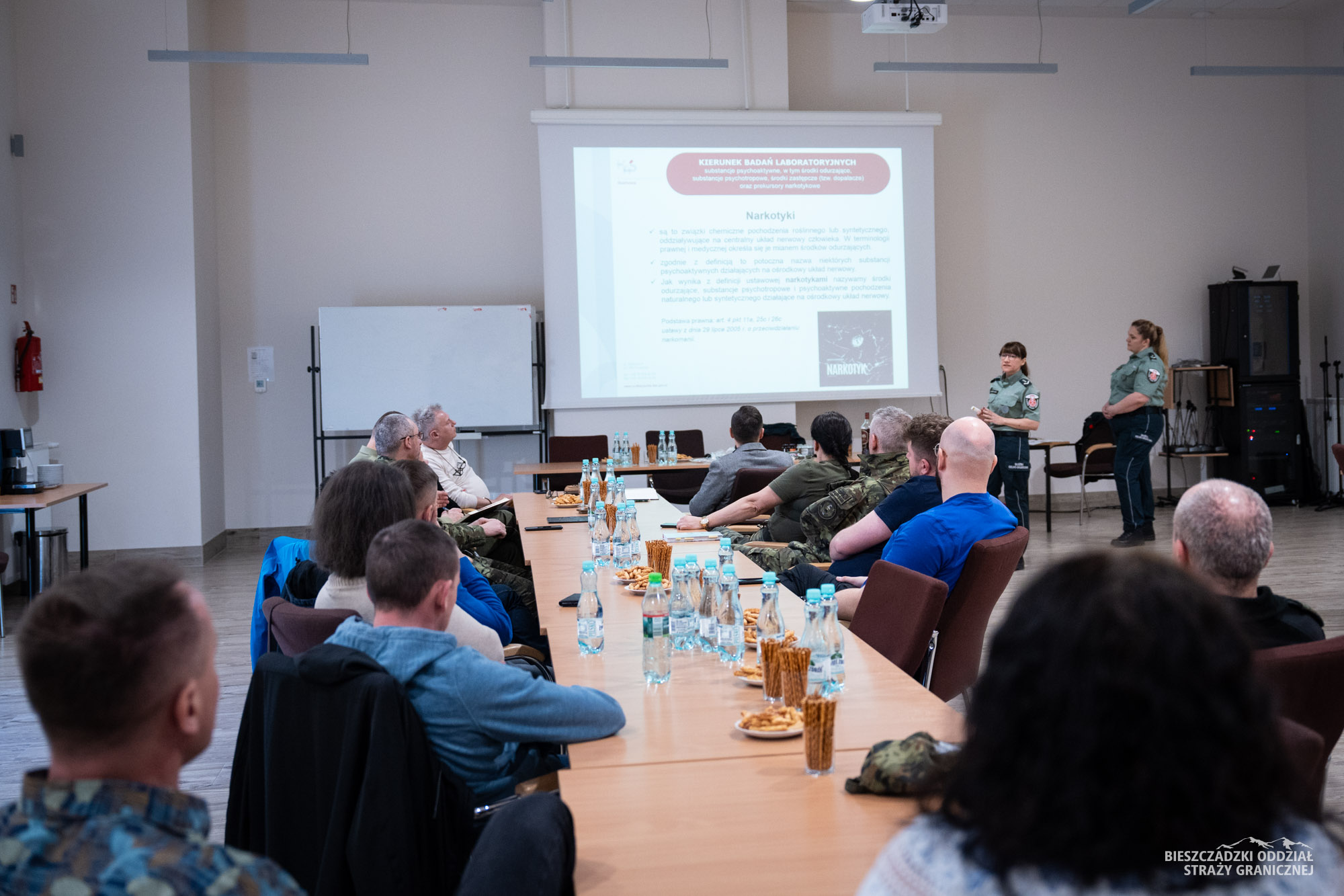 Szkolenie zorganizowano 24 marca w ramach współpracy Bieszczadzkiego Oddziału SG z podkarpacką KAS. Zajęcia przeprowadziły funkcjonariuszki Służby Celno-Skarbowej z Laboratorium Celno-Skarbowego w Przemyślu. Celem szkolenia było doskonalenie umiejętności rozpoznawania i identyfikacji substancji psychotropowych i środków odurzających.