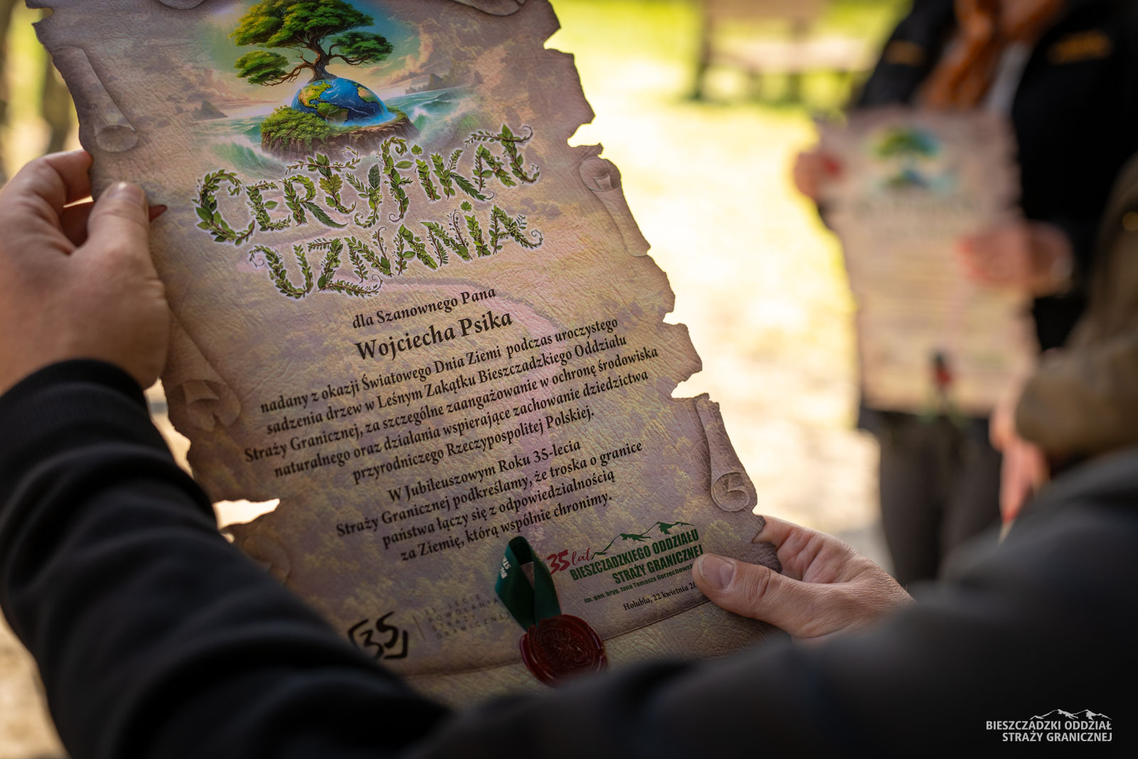 22 kwietnia strażnicy graniczni oraz przedstawiciele współpracujących instytucji w niekonwencjonalny sposób połączyli świętowanie 35-lecia BiOSG z troską o środowisko. „Leśny Zakątek Bieszczadzkiego Oddziału SG” posadzili wspólnymi siłami funkcjonariusze na czele z Komendantem, gen. bryg. SG Tomaszem Zybińskim. W wydarzeniu uczestniczyli także: Wojewoda Podkarpacki Teresa Kubas-Hul, Nadleśniczy Nadleśnictwa Krasiczyn Przemysław Włodek, Łowczy Okręgowy ZO PZŁ Przemyśl Tomasz Makarowski, a także Dyrektor ZSEiO w Przemyślu Wojciech Psik wraz z uczniami klasy mundurowej.